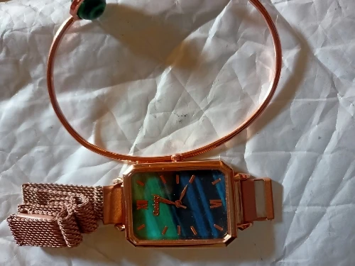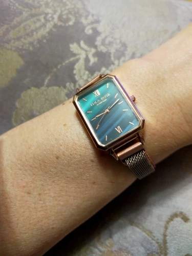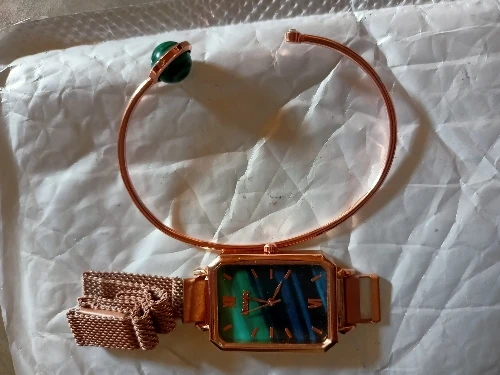 Женские кварцевые часы, с браслетом и зеленым циферблатом
