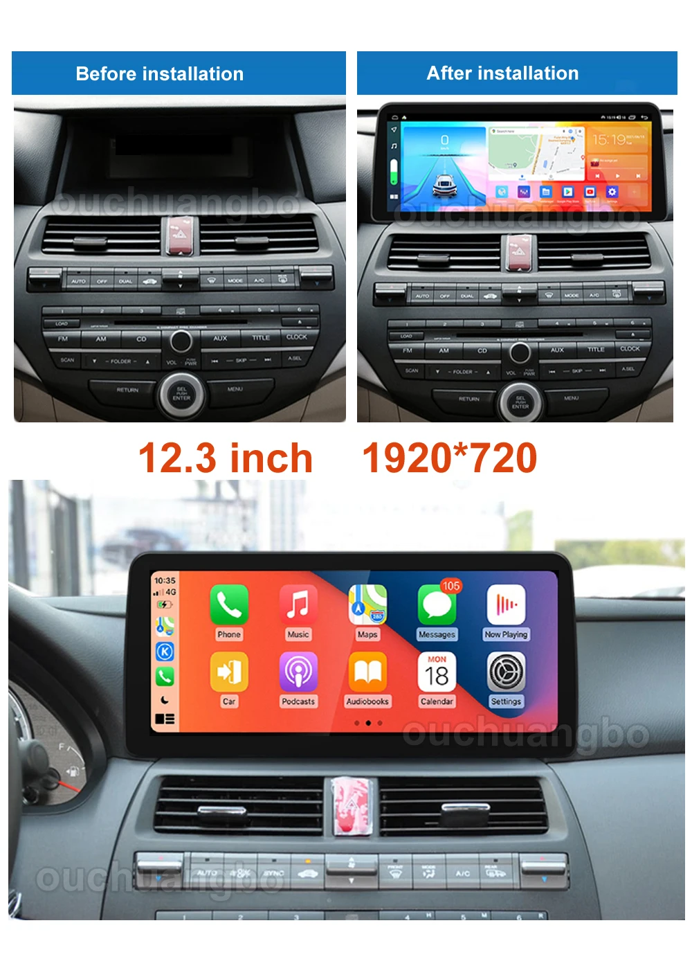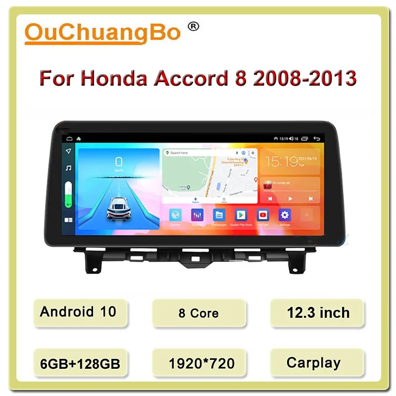Автомагнитола Ouchuangbo, 4G, стерео, Android 11, 12,3 дюйма, для Honda Accord 8 2008-2013 с беспроводным Carplay 8 ядер, 6 ГБ, 128 ГБ, 1920*720
