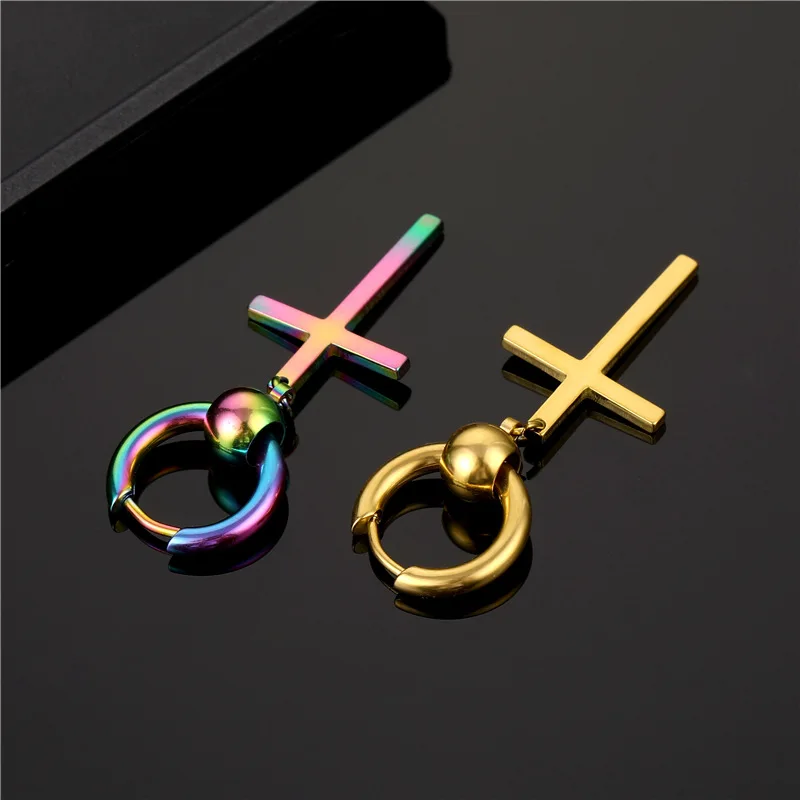 Модные очаровательные серьги-кресты в стиле панк-рок для женщин и мужчин, высококачественные массивные серьги из нержавеющей стали в стиле хип-хоп, ювелирные изделия для ушей, 1 шт.
