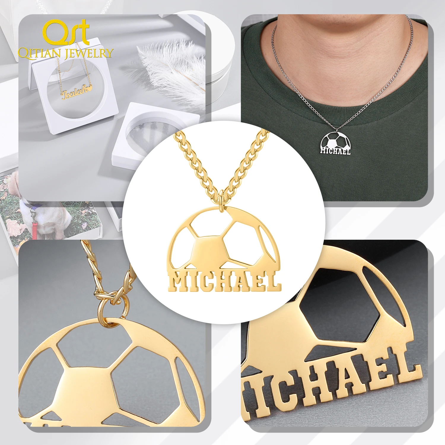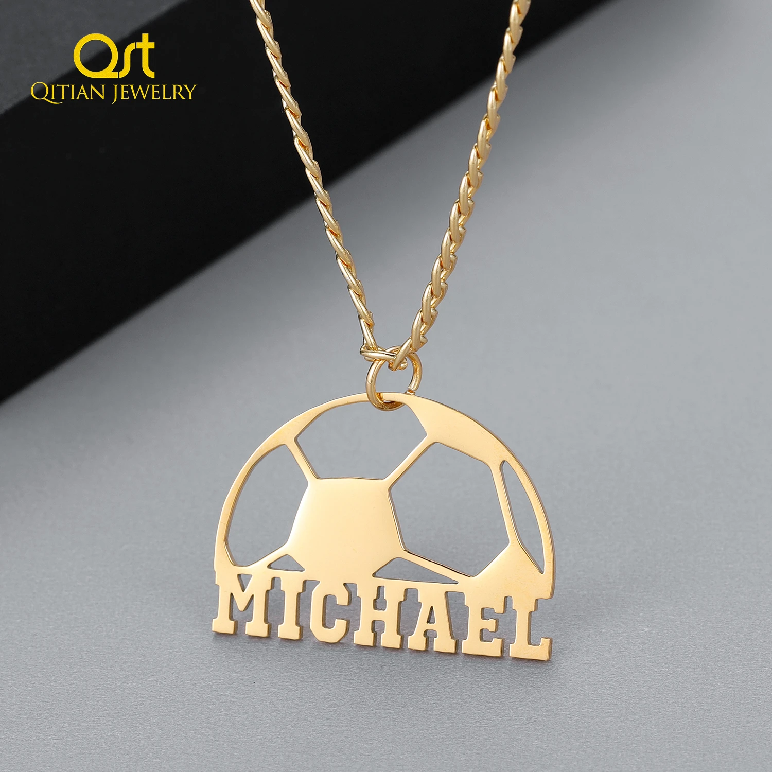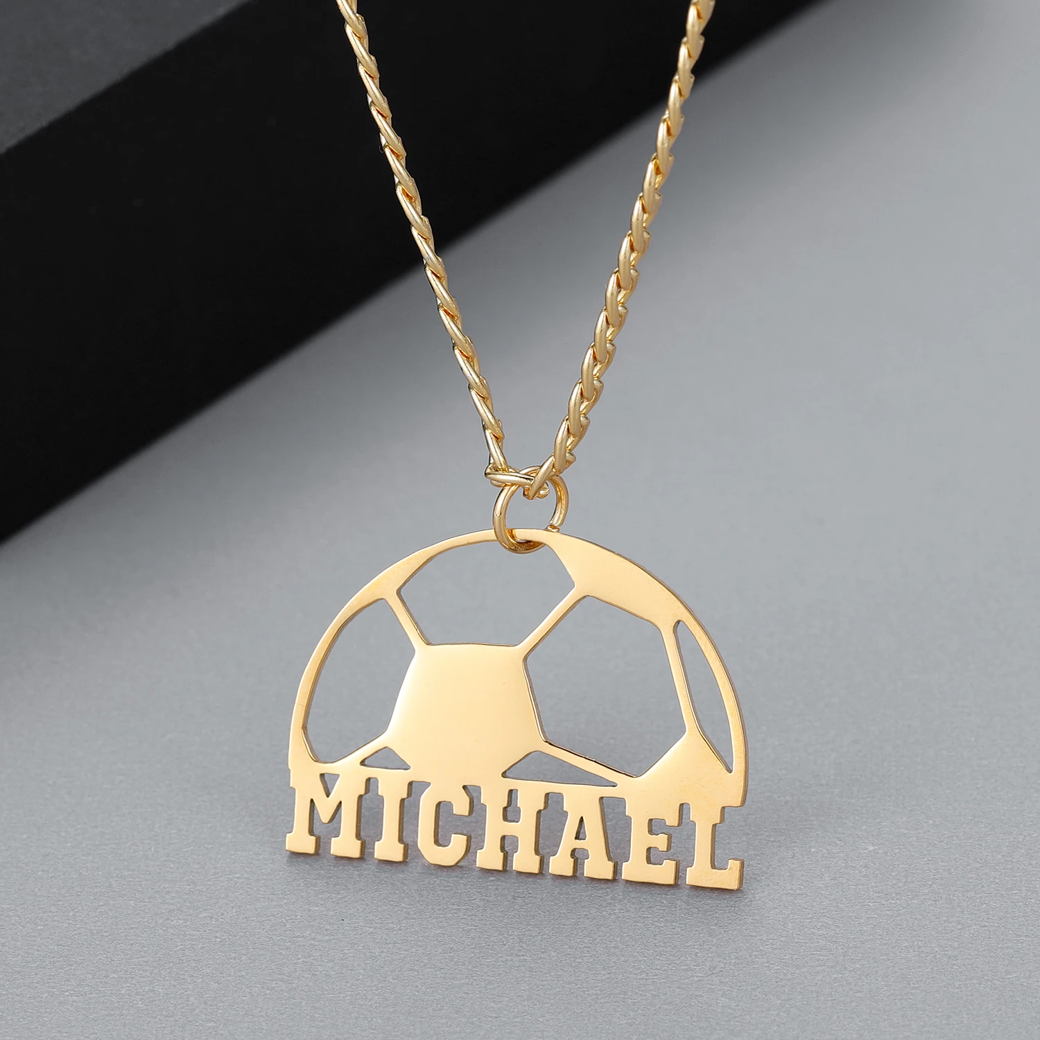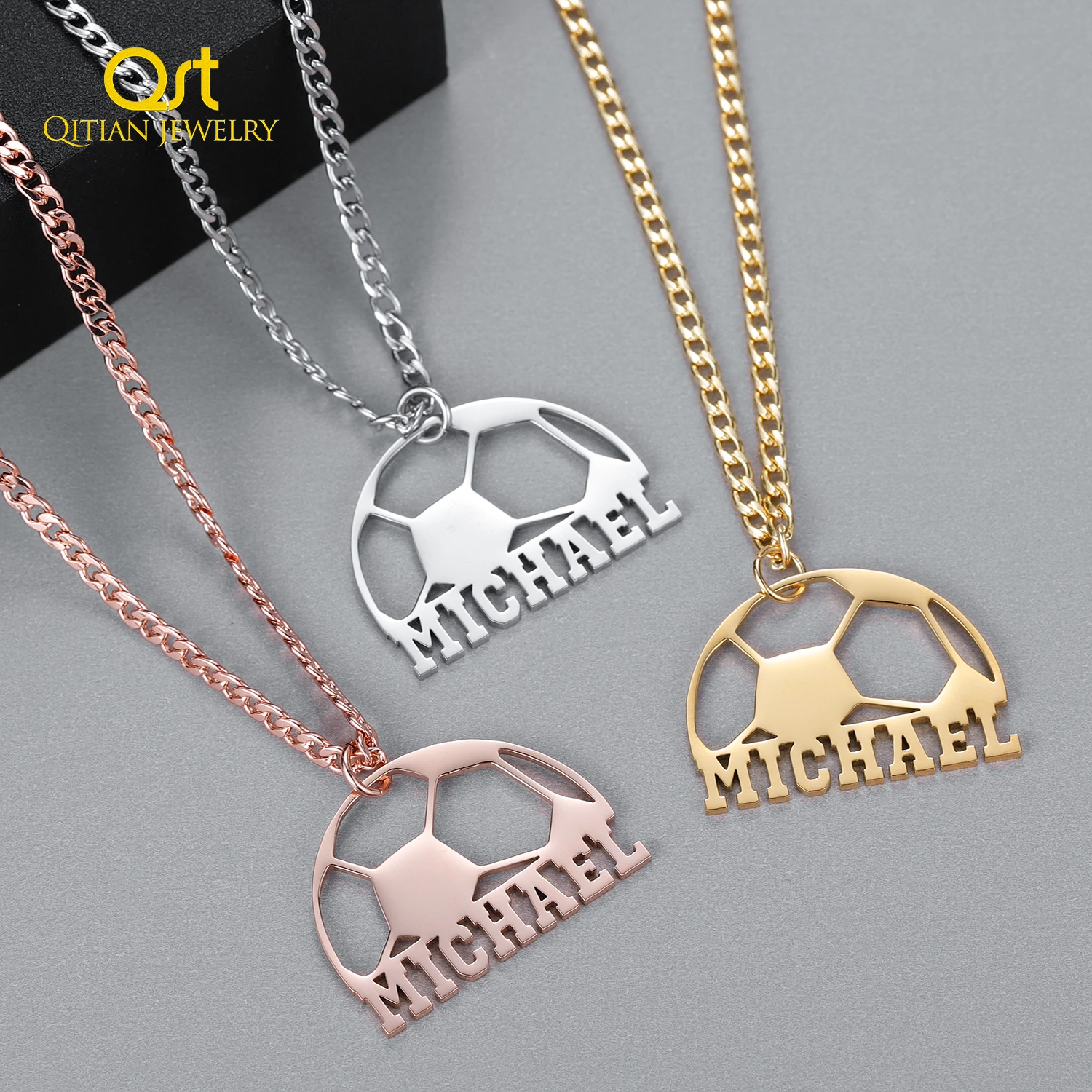 Мужское ожерелье с именем футбольного мяча на заказ, золотая цепочка из нержавеющей стали с именной табличкой и надписью, рождественские украшения, мужской подарок