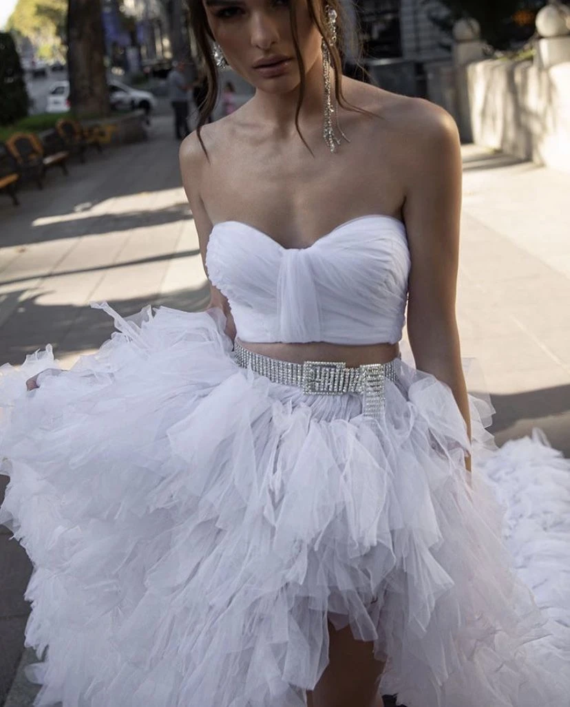 Белая пышная бальная юбка для выпускного вечера из тюля пышная короткая юбка пикантная Пышная юбка с высокой талией юбки из тюля с заниженной талией Ever Pretty