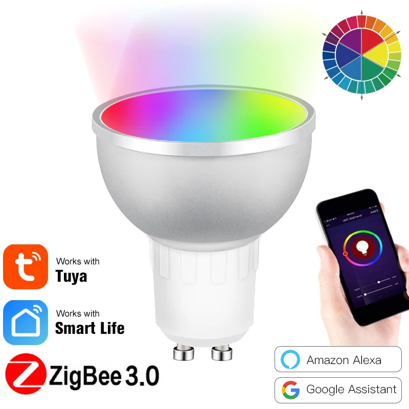 Умсветильник Беспроводная лампа с Wi-Fi, 6 Вт, GU10, светодиодная лампа для Tuya Smart Life, работает с Alexa, Google Home Assistant, быстрая доставка, распродажа