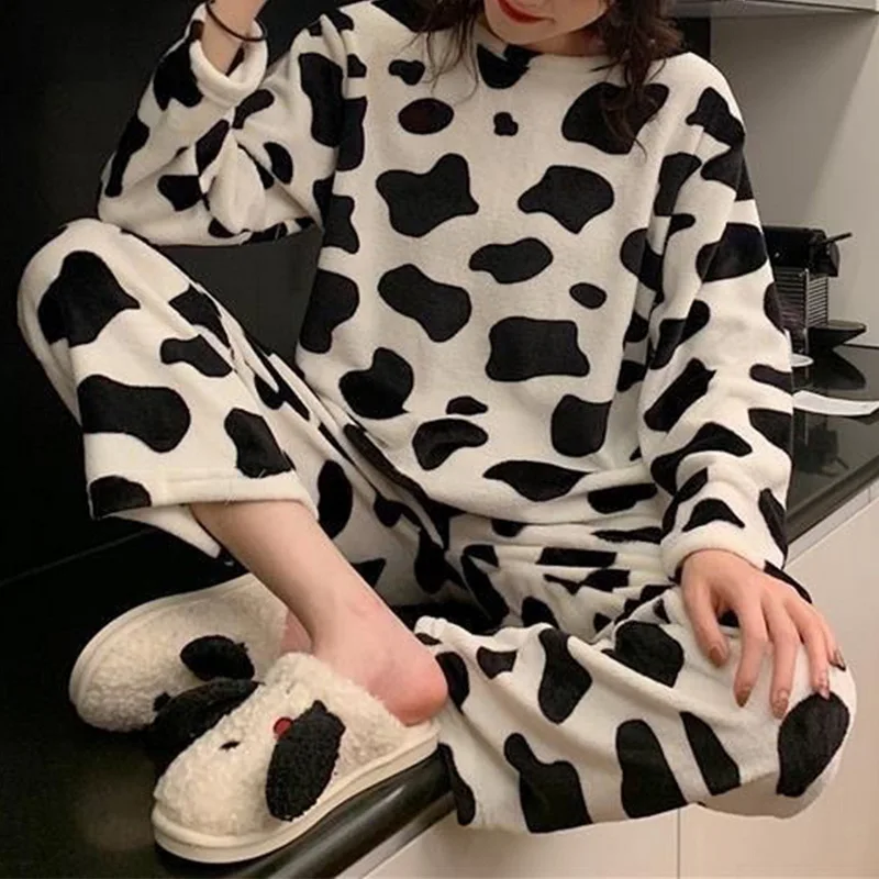 Новинка, Женский пижамный комплект, осенне-зимние пижамы, фланелевая Толстая теплая Женская одежда для сна с мультяшным принтом, Милая женская хлопковая Домашняя одежда с животными