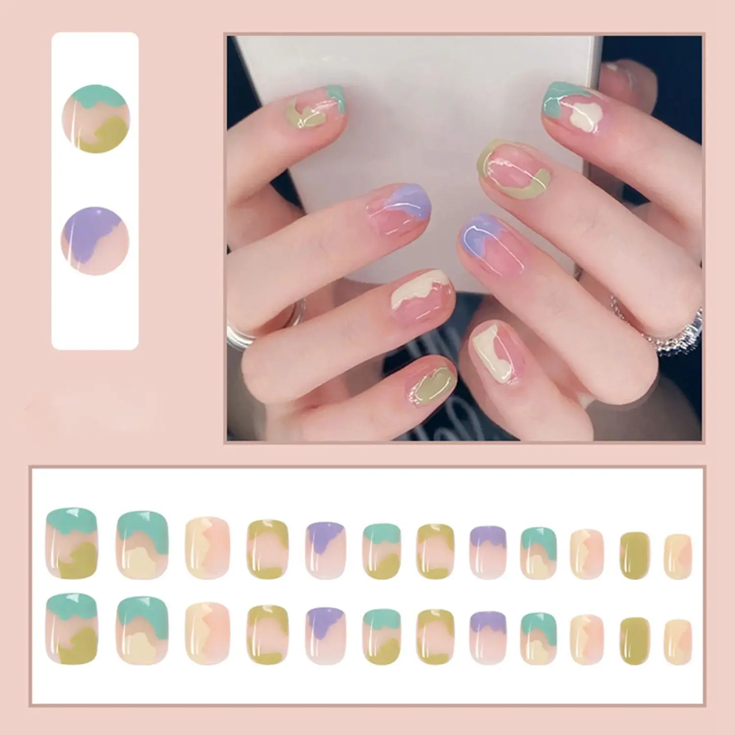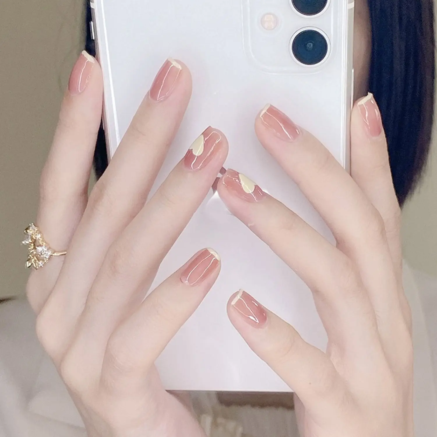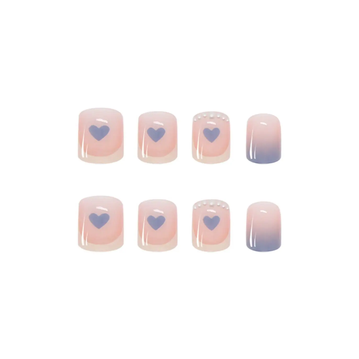 24 шт.корт., съемный бант в форме сердца, полное покрытие, искусственные короткие круглыеквадратные ногти, накладные ногти, носимые накладные ногти