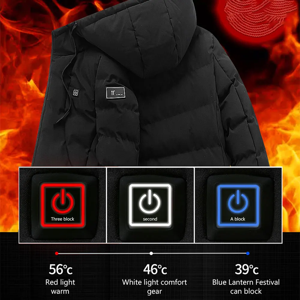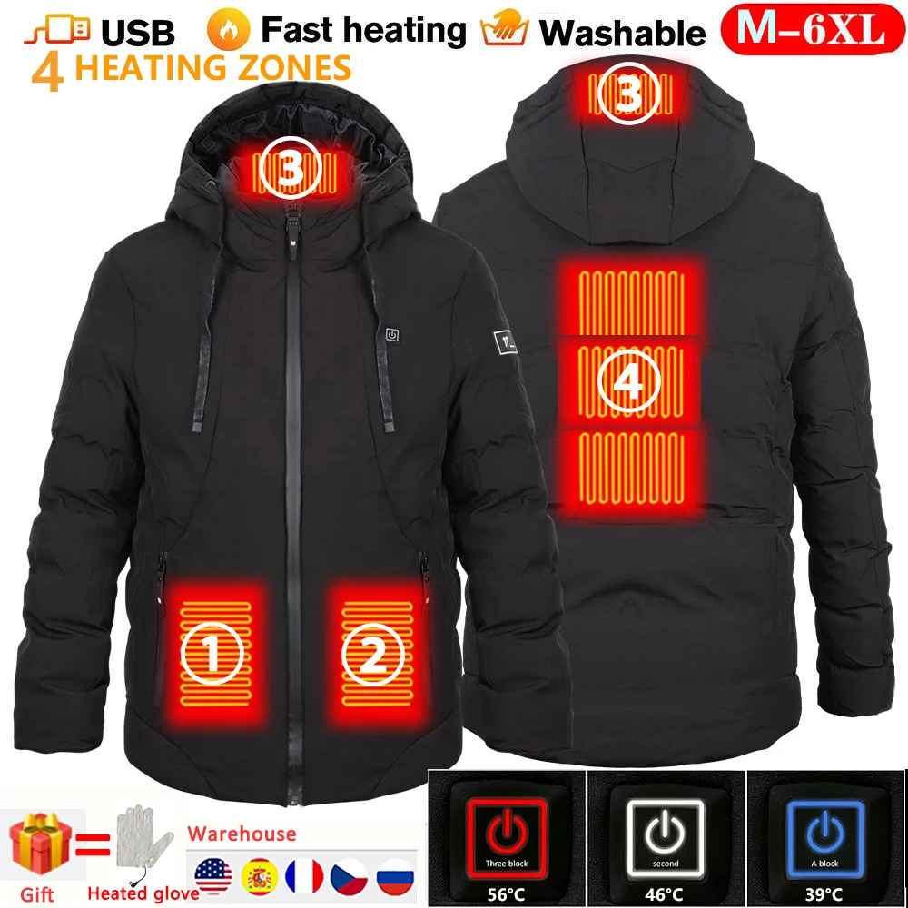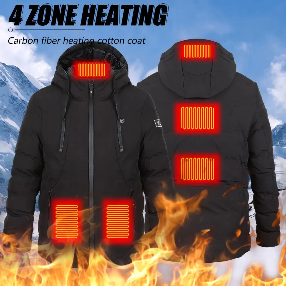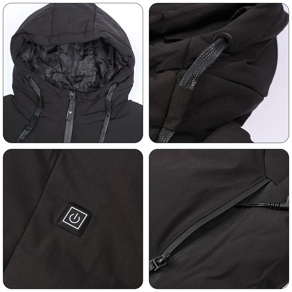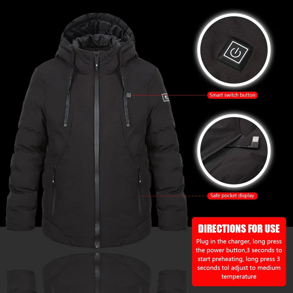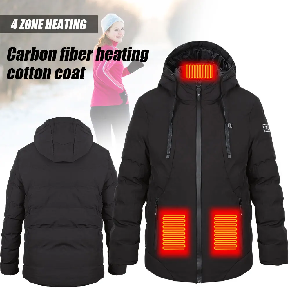 Мужская и женская умная куртка с электроподогревом и USB, хлопковое пальто, зимняя утепленная куртка с капюшоном, уличная одежда для пешего туризма и лыжного спорта, куртка с подогревом 4