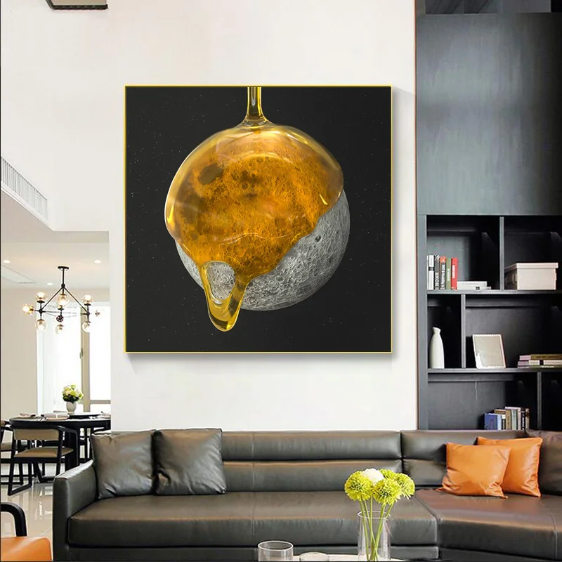 Медовая черная белая луна, холст, живопись, абстрактный пейзаж, принты, плакаты, современное настенное искусство, картины, гостиная, украшение для дома