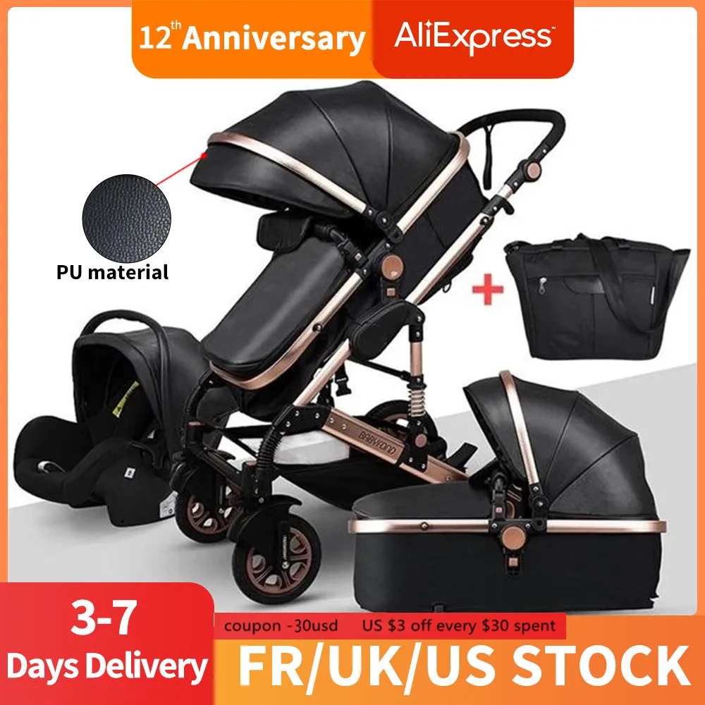 В продаже! ЕС без налогов! Роскошная детская коляска 3 в 1 для новорожденных, коляска с высоким ландшафтом, может сидеть, наклонная коляска с амортизатором