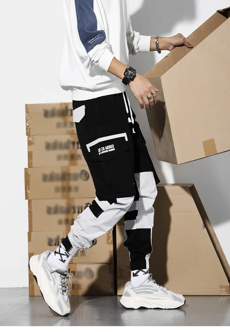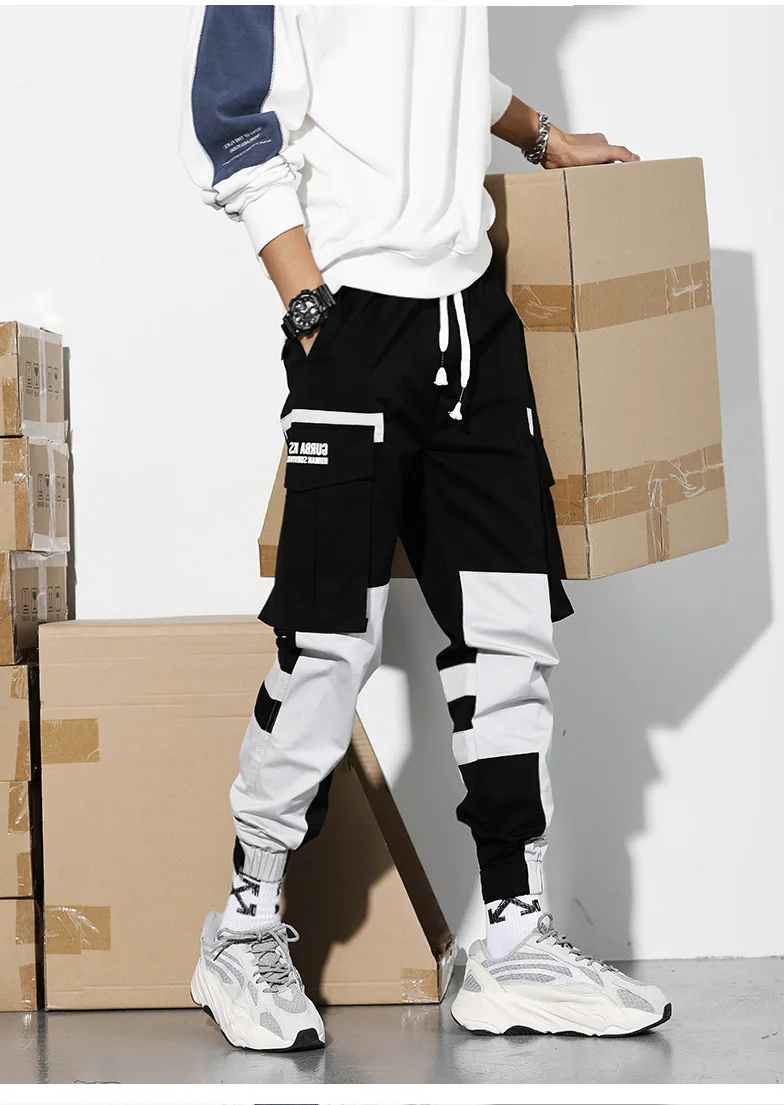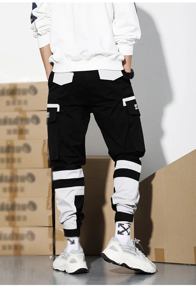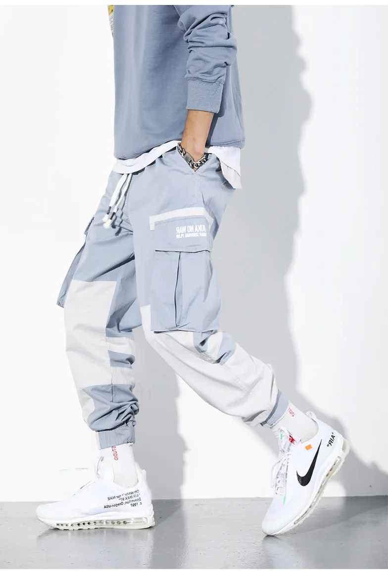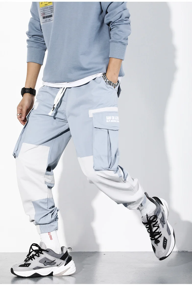 Брюки-карго мужские черные, джоггеры, тренировочные штаны, Повседневная Уличная одежда в стиле хип-хоп, соединение, синие