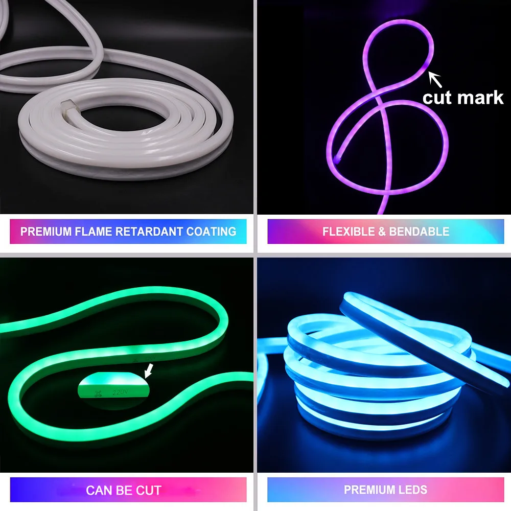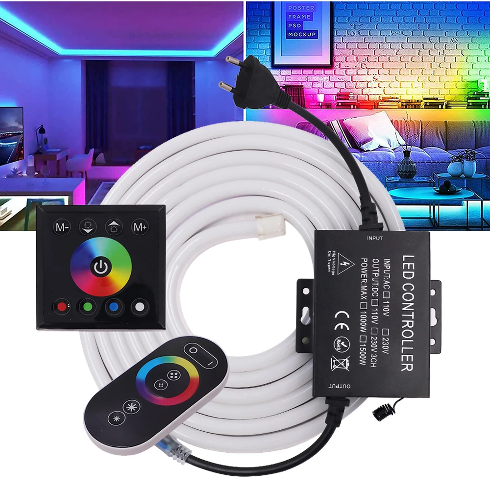 Светодиодный неоновый светильник + контроллер штепсельной вилки европейского стандарта + 1 пульт дистанционного управления + алюминиевые зажимы