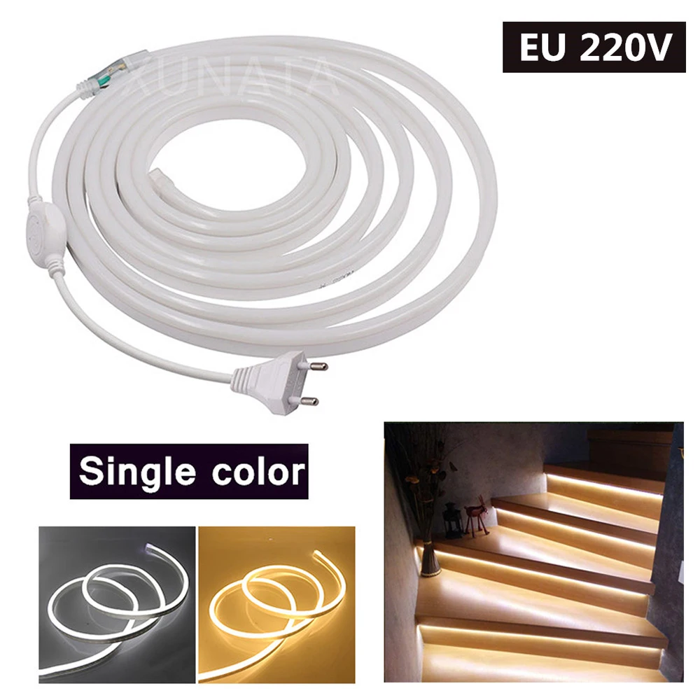 RGB неоновая лента 220 В с европейской вилкой, водонепроницаемая гибкая лента светодиодный ная неоновая лента для внутреннего и наружного освещения SMD 2835 5050 светодиодный Светодиодная лента