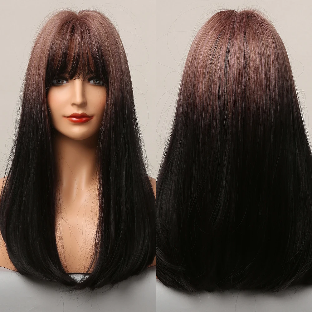 EASIHAIR длинные Омбре коричневый синтетический парик для женщин с челкой ежедневно шелковистые прямые Косплей парики термостойкие