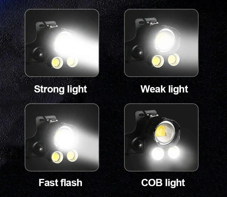 4 ModesStrong light, weak light, burst flashing, --COB always bright