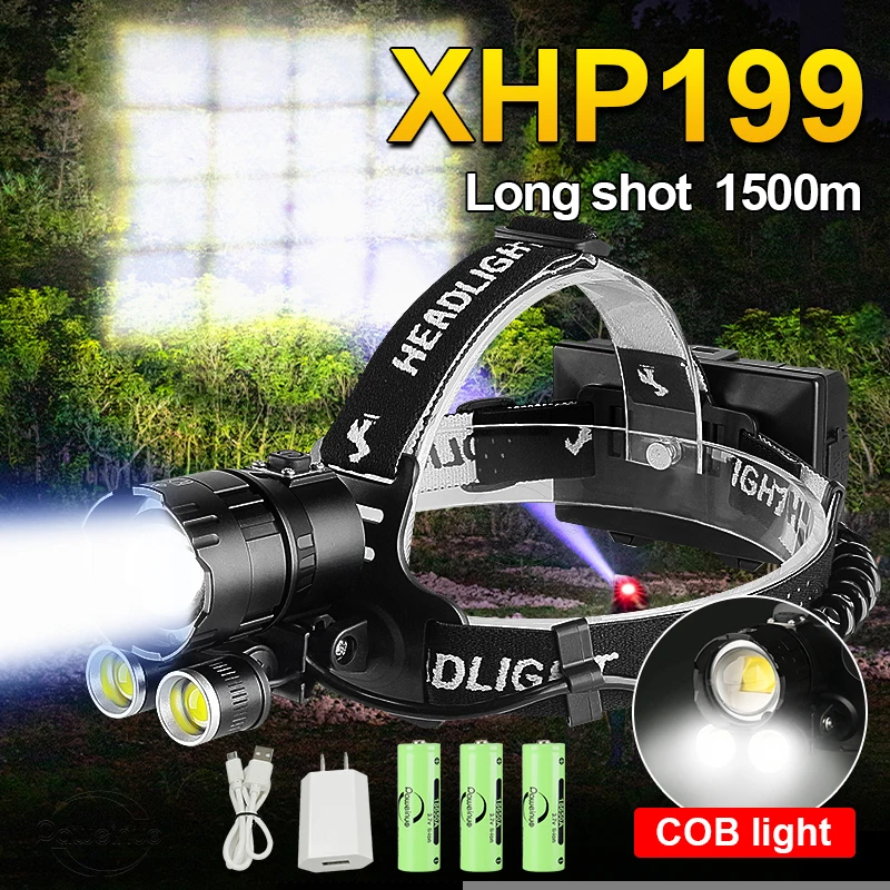 Новейший налобный фонарь XHP199 COB высокой мощности 18650 Usb Головной фонарь перезаряжаемый налобный фонарь XHP160 XHP90 Мощный светодиодный налобный фонарь