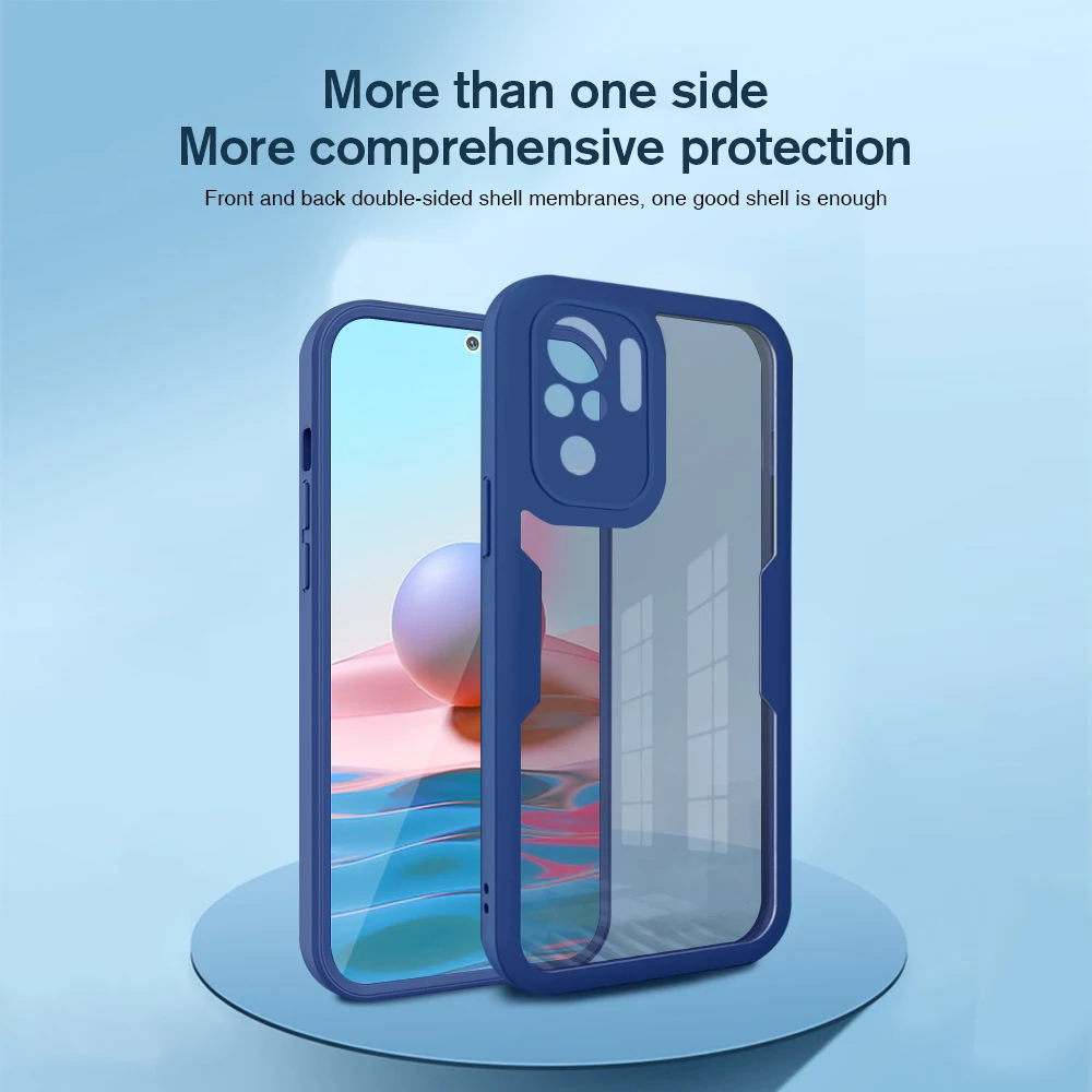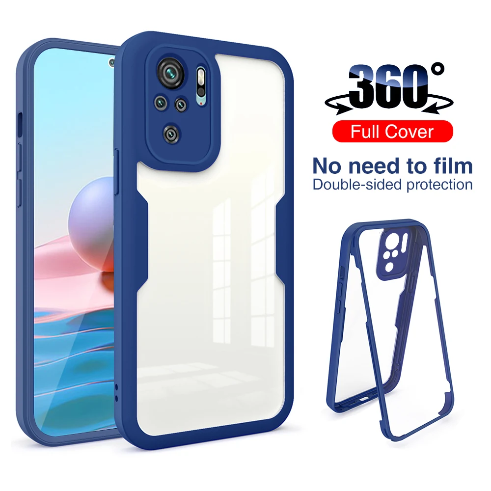 Чехол для Xiaomi Redmi Note 10 360 с полным покрытием, передняя задняя крышка для Poco M3 X3 Mi 11 10s Lite Pro, прозрачный защитный чехол для телефона