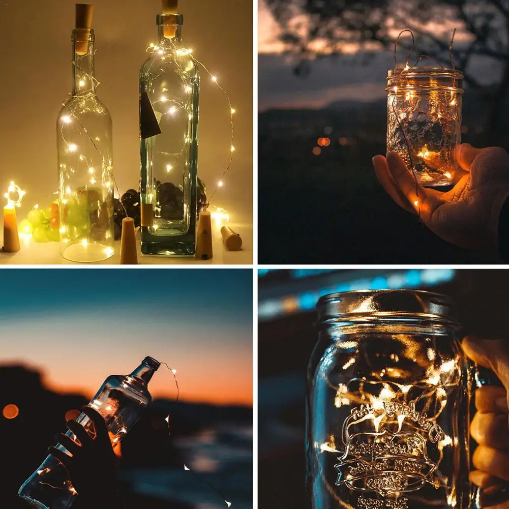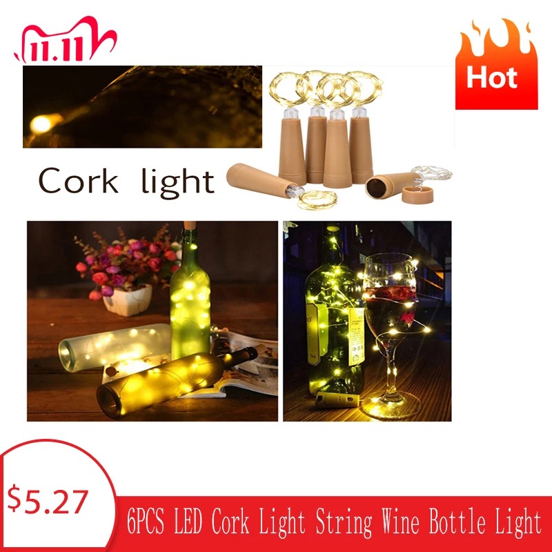 6 шт., 2 м, 20 пробковых ламп, батарея AAA, светодиодные пробковые лампы, световые украшения, медная гирсветильник, теплсветильник свет, сделай сам
