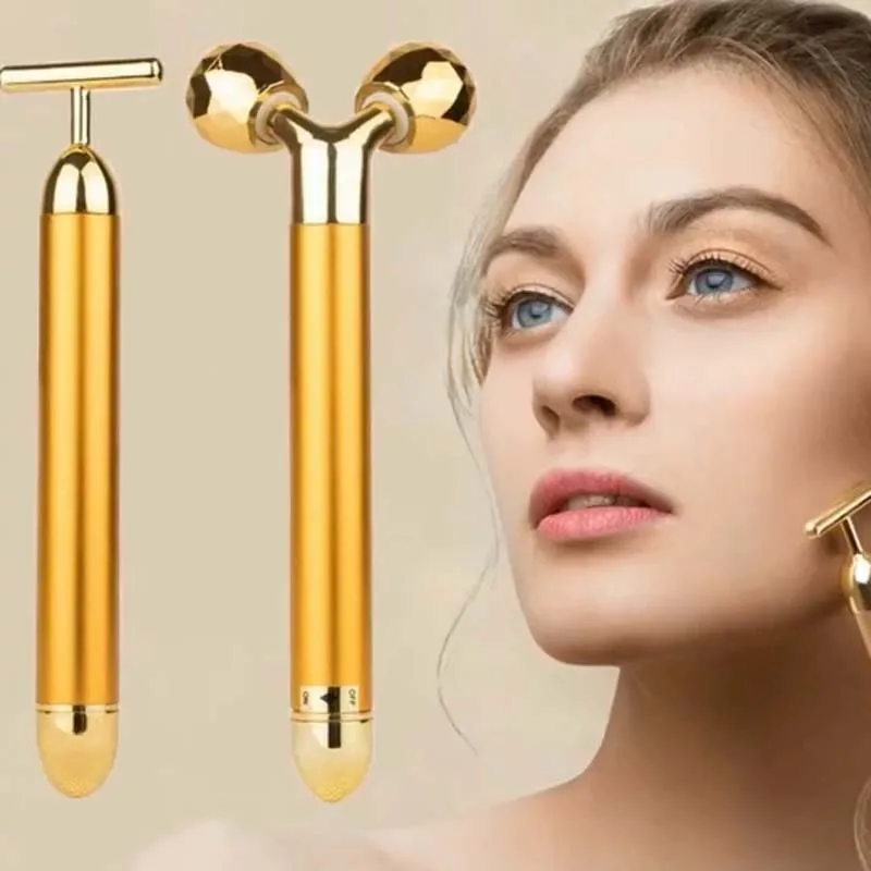 Многофункциональное устройство для ухода за красотой, 24k, массажная палочка для лица, 3D Золотой энергетический брусок, вибромассажер для косметического инструмента