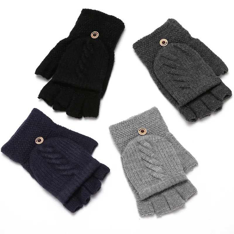 Шерстяные вязаные перчатки-книжки без пальцев, зимние теплые гибкие перчатки для сенсорного экрана для мужчин, женщин, мужчин, варежки с открытыми пальцами, перчатки, подарки