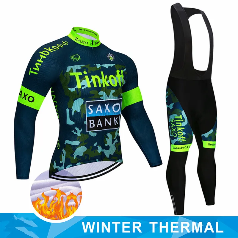 Зимняя велосипедная одежда Saxo Bank Tinkoff, комплект из Джерси с длинным рукавом, Теплая Флисовая одежда для горных велосипедов и гонок, Мужская велосипедная форма, костюм