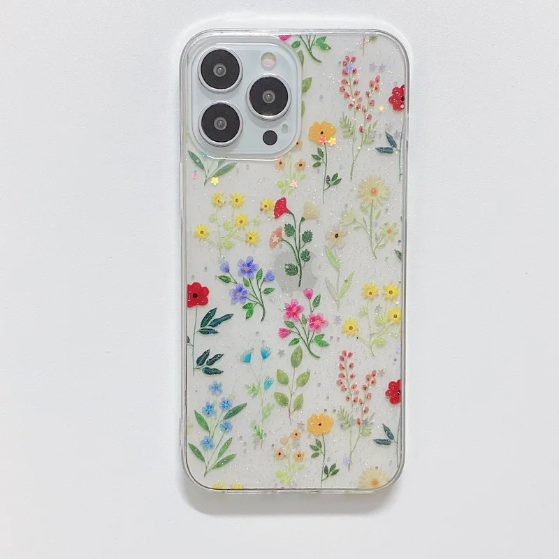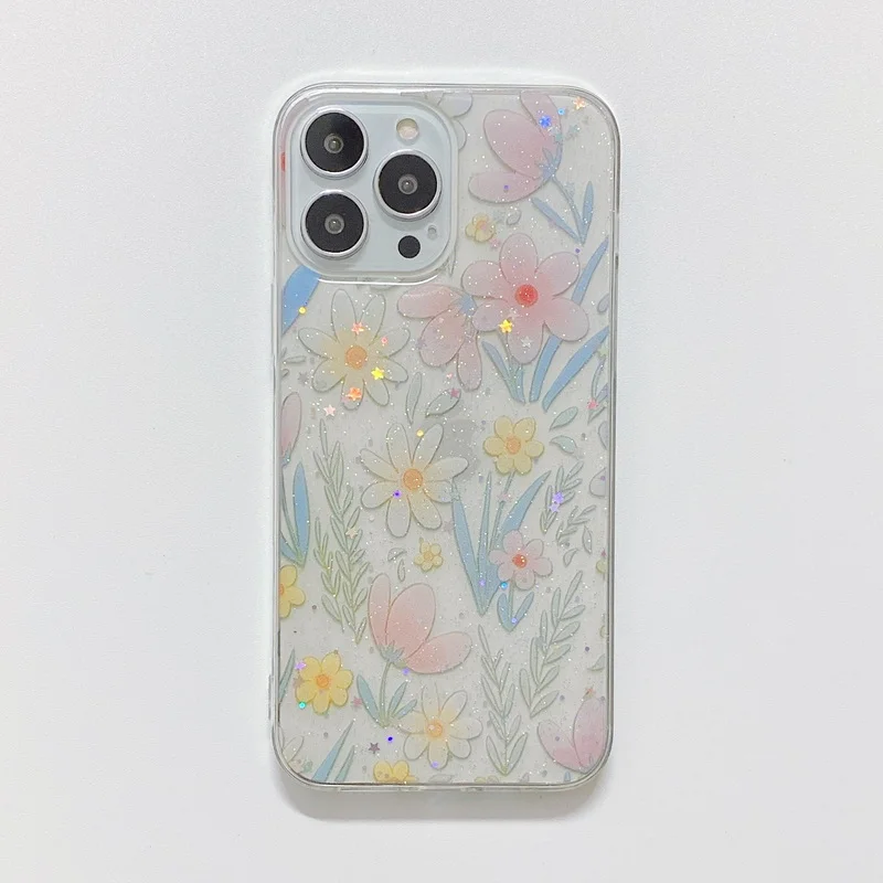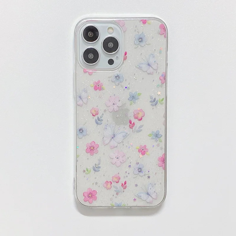 Милый блестящий чехол с цветами для iPhone 13 12 11 Pro Max Mini XR XS X 10 8 7 Plus SE 2020 прозрачный эпоксидный силиконовый мягкий чехол Coque