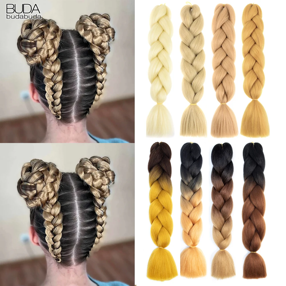 Budabuda, вязанные крючком огромные косички, синтетические косички, плетеные волосы, 24 дюйма, длинные, прямые, предварительно растягивающиеся, для африканских косичек