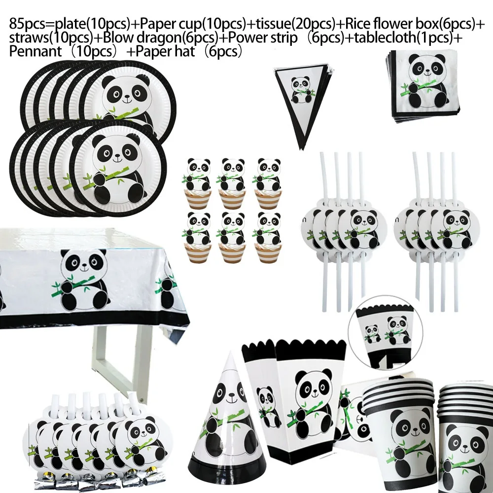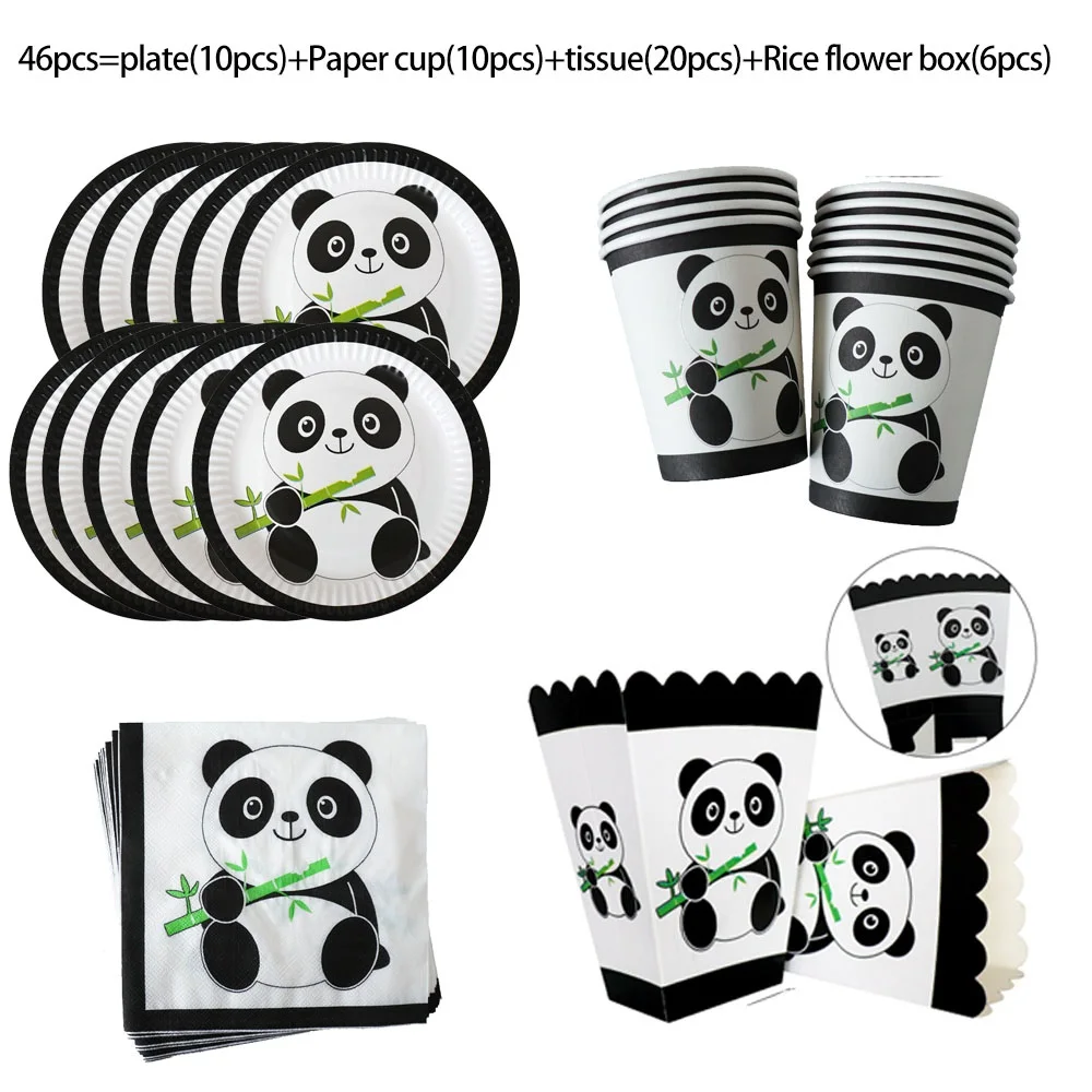 Одноразовая посуда в виде панды на день рождения, праздничная вечеринка, детский дисплей, бумажная тарелка, набор бумажных стаканчиков, салфеток