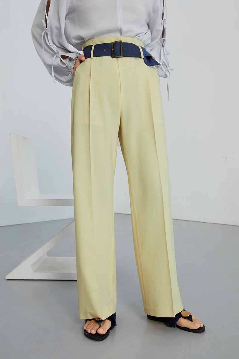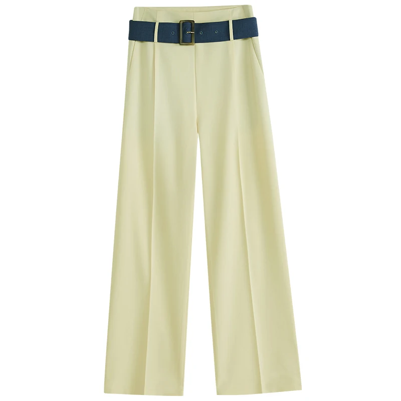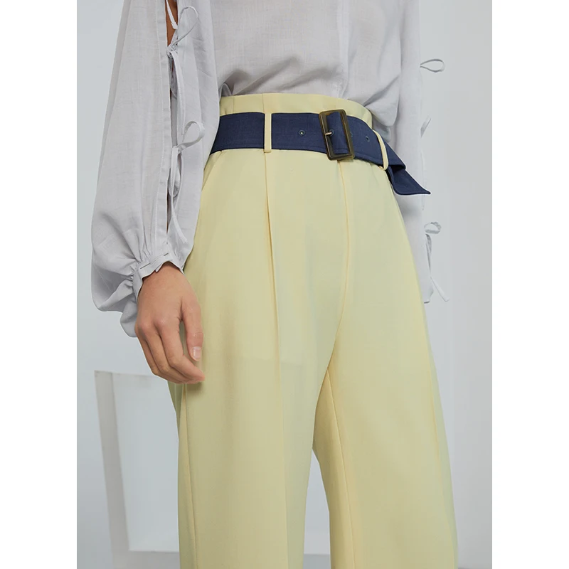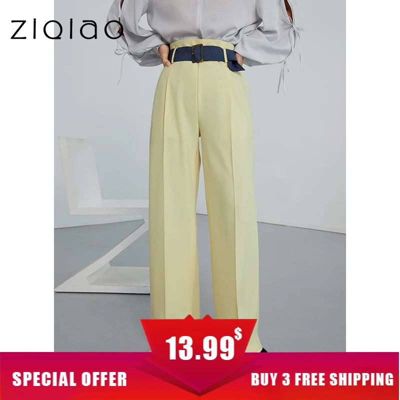 ZIQIAO Женские однотонные укороченные брюки с поясом и высокой талией