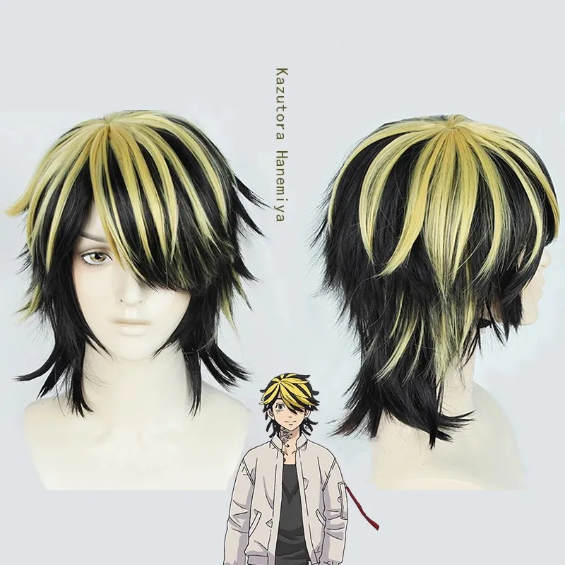 Новинка аниме Токио Мстители ханемия казутора косплей парик черные золотые волосы Токио манджи банда капитан, для косплея Косплей парики + парик шапочка