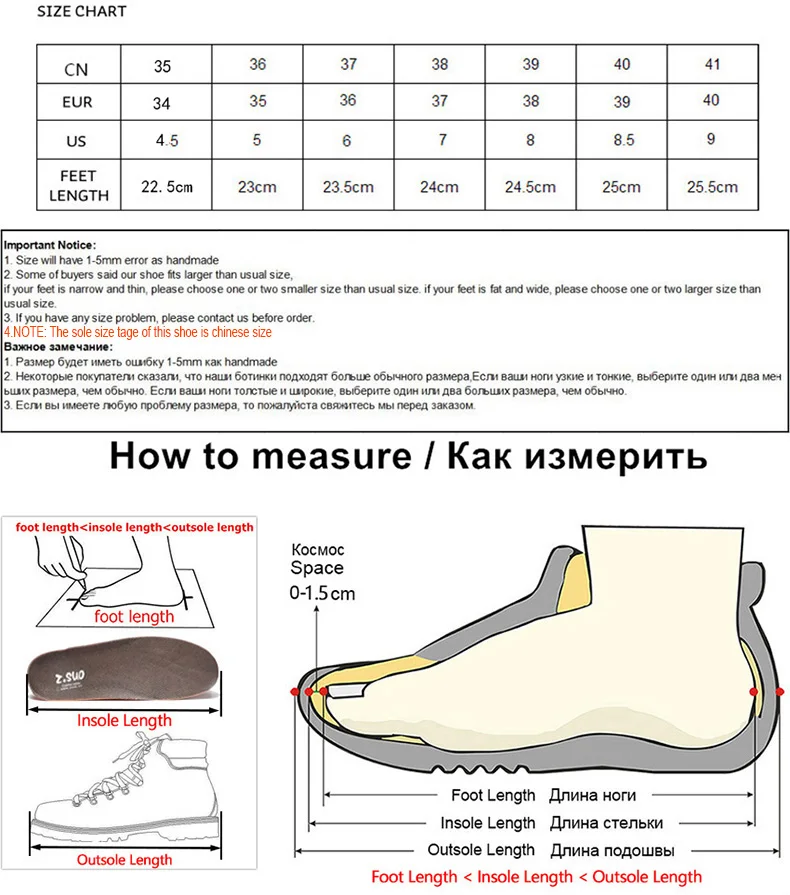 Размеры 4,5 = длина стопы 22,5 см = Китайский Размеры 35/225Размер 5 = длина стопы 23 см = Китайский размер 36/230Размеры 6 = длина стопы 23,5 см = Китайский Размеры 37/235Размер 7 = длина стопы 24 см = Китайский размер 38/240Размеры 8 = длина стопы 24,5 см = Китайский размер 39 /245Размер 8,5 = длина стопы 25 см = Китайский размер 40/250