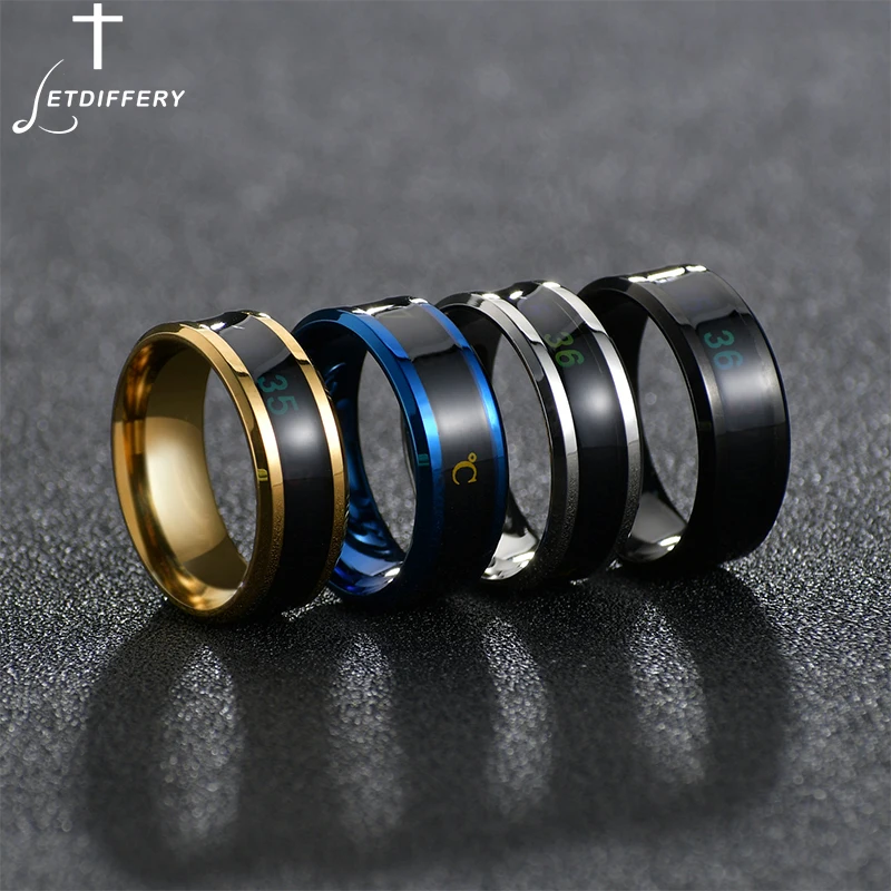 Мужское кольцо для измерения температуры тела, чувствительное изделие из нержавеющей стали в стиле панк, в реальном времени
