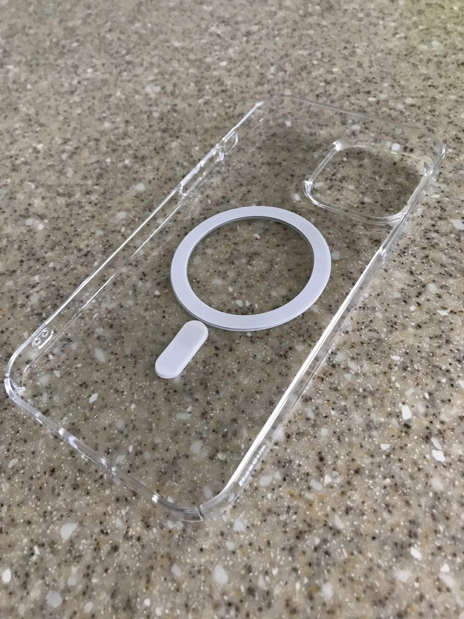 Belle coque cristal en plastique semi-rigide. Le magsafe fonctionne bien. Produit conforme.