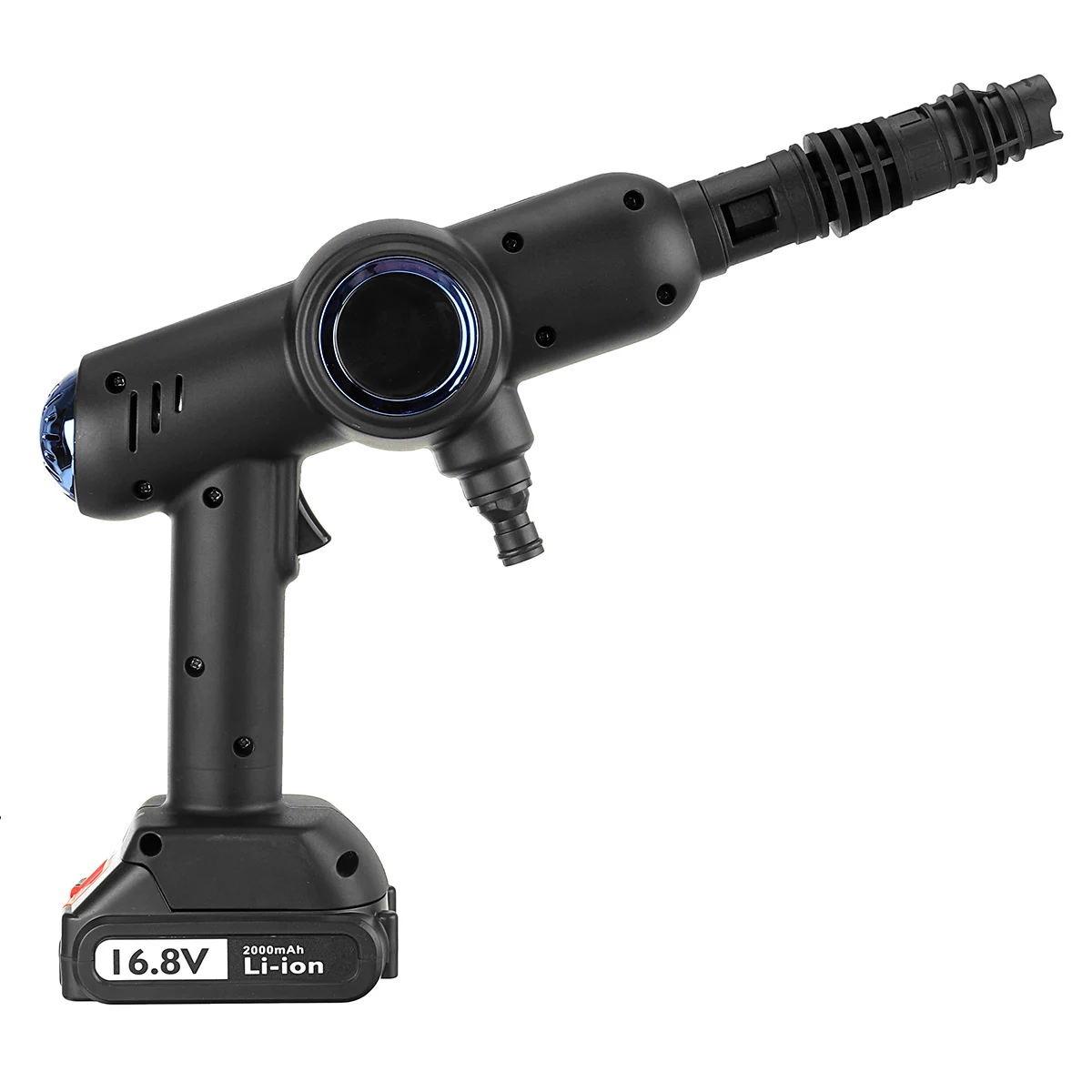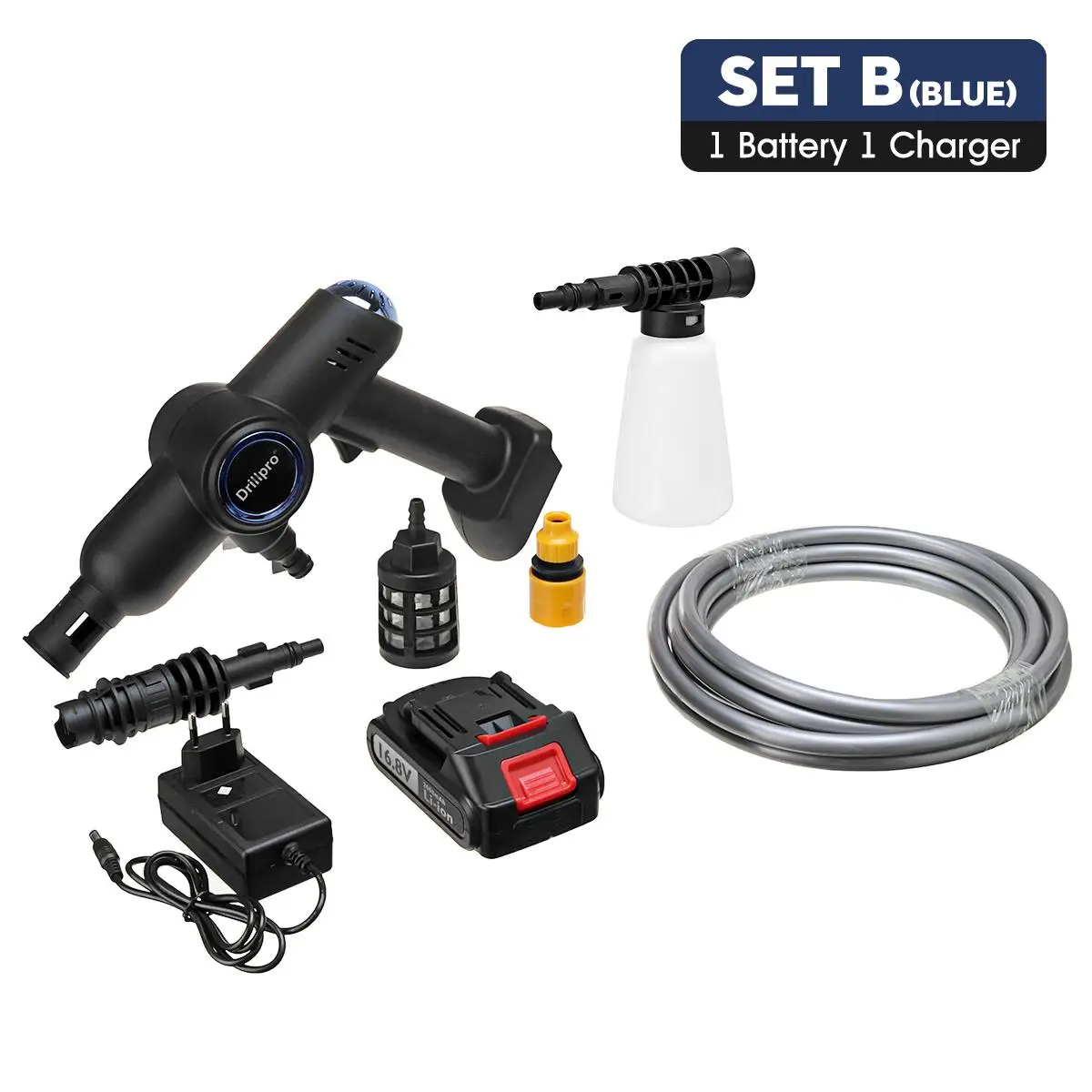 Название: Беспроводная портативная мойка высокого давления для автомобиляЦвет: черный + синий; Черный + серебристыйМатериал: АБС-пластикРазмеры: 27x8x23 см/10,6x3,1x9,1"Мощность: 180 ВтВходное напряжение: 220 ВАккумулятор: 16,8 в 2000 мАч литий-ионный аккумуляторВыносливость: около 65 минутПиковое давление: 20 барРегулируемый Тип воды: высокое давление, форма вентилятора, пена
