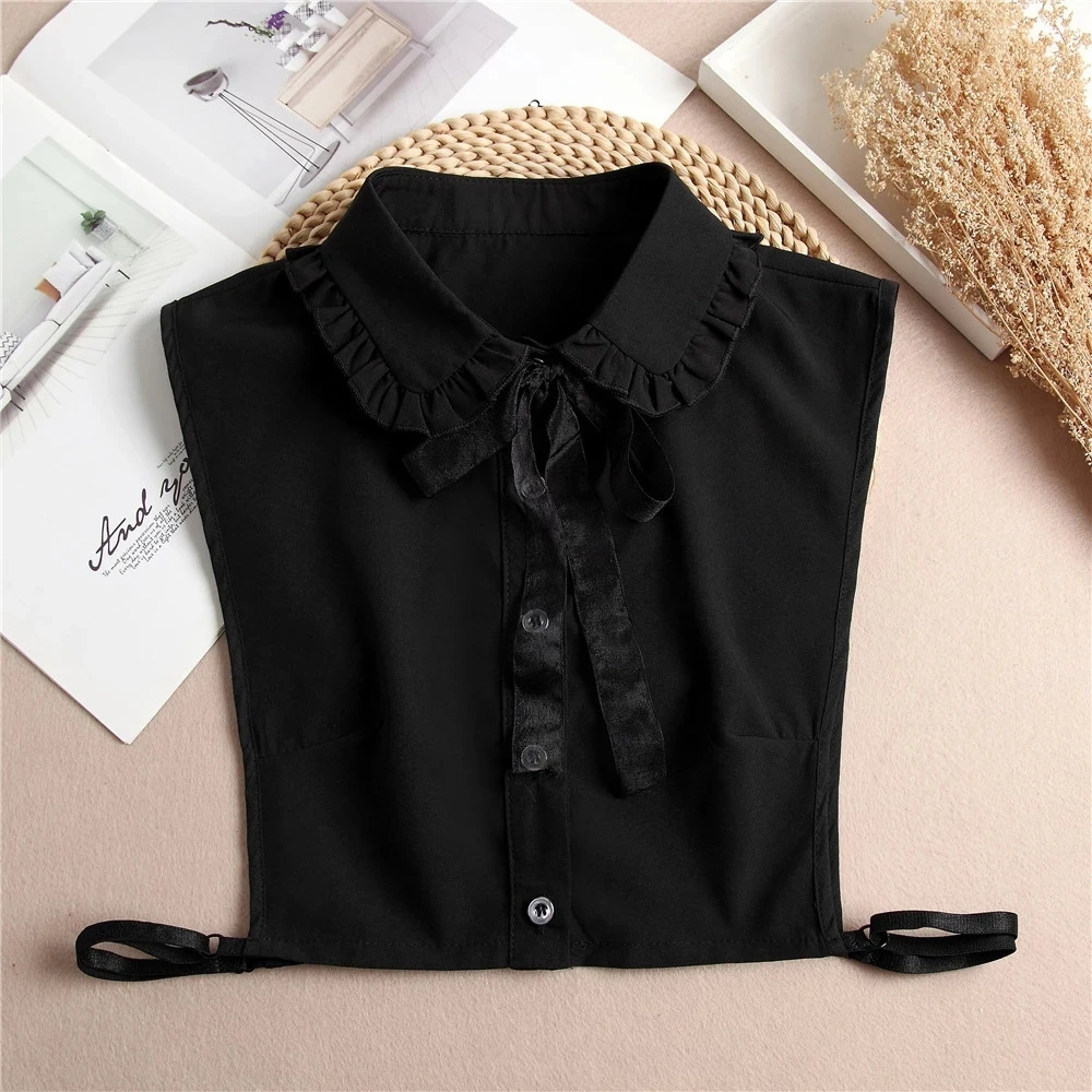 Женская рубашка со съемным воротником, кружевной воротник-Имитация шифона, универсальная вышитая рубашка со съемным воротником и воротником-стойкой