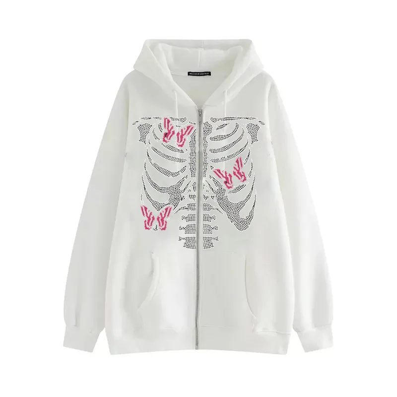Женская толстовка с капюшоном, в готическом стиле, уличная свободная толстовка с бабочкой, черепом, стразы, Y2K, 2021