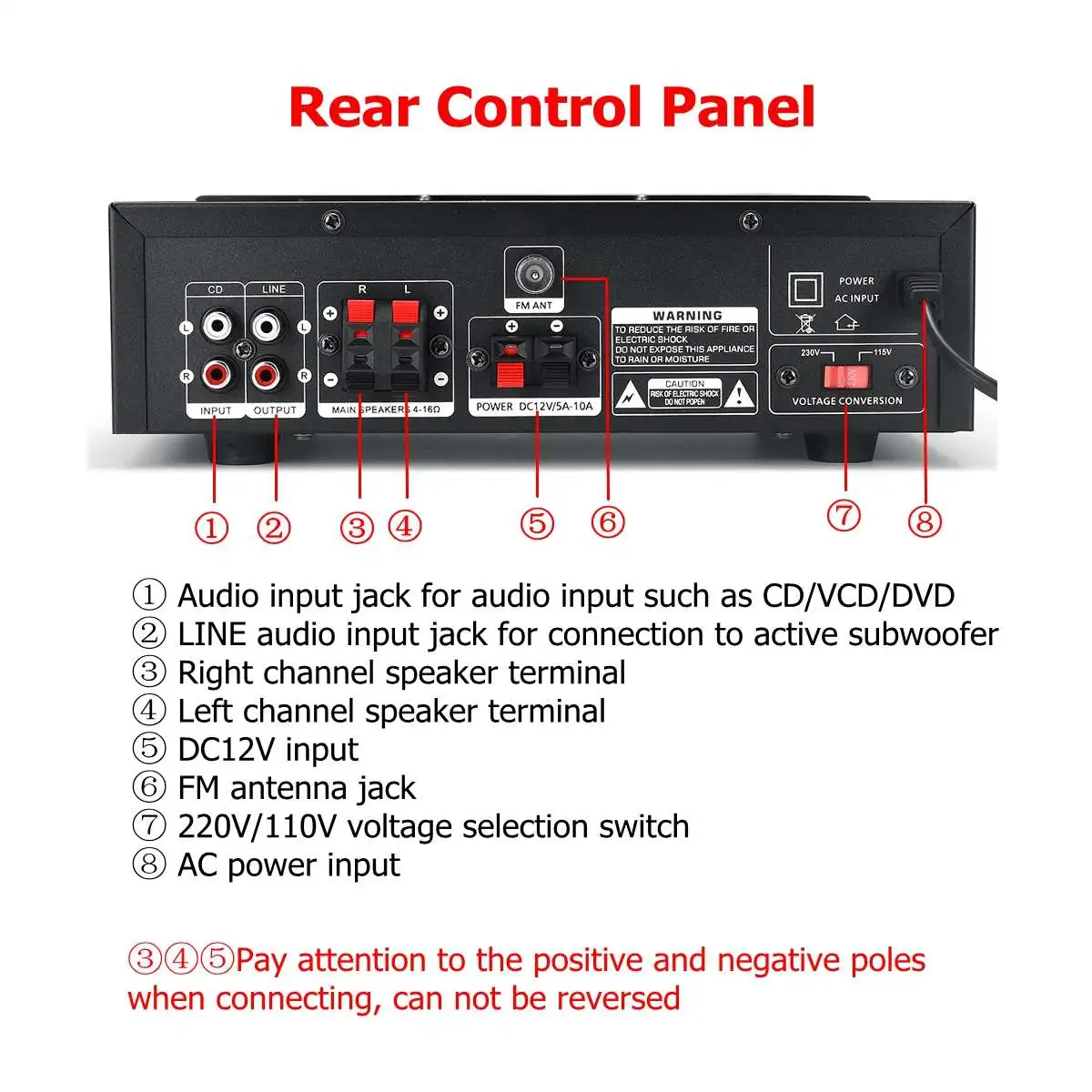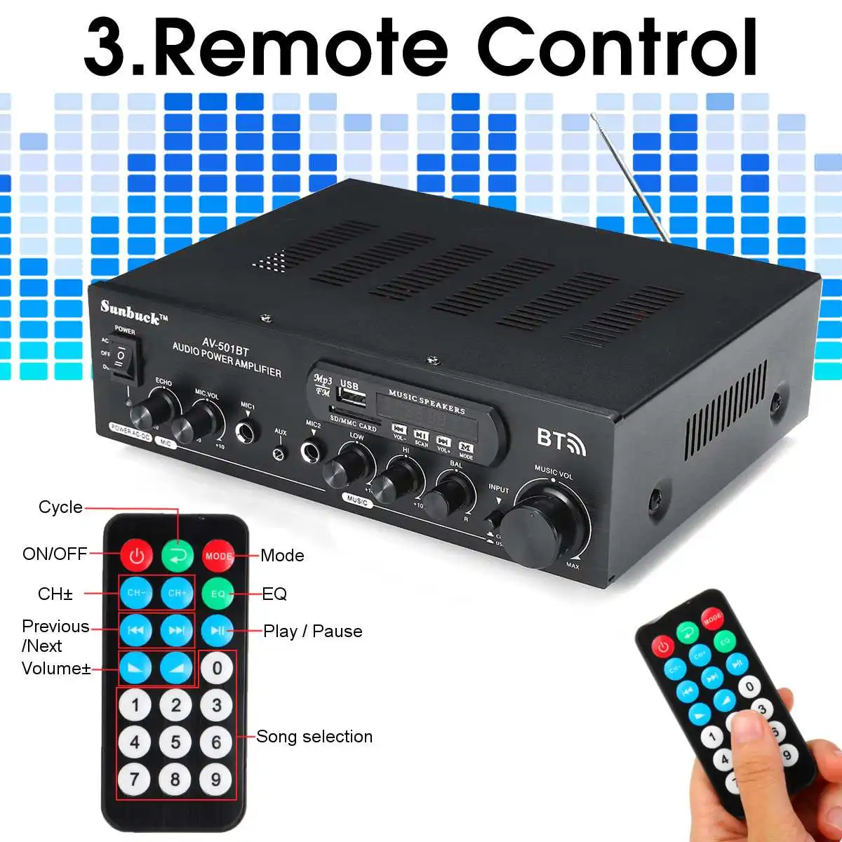 2500W Bluetooth аудио Мощность УСИЛИТЕЛЬ 110V/220V DC 12V вход AUX USB SD 2 * Входной сигнал Mic