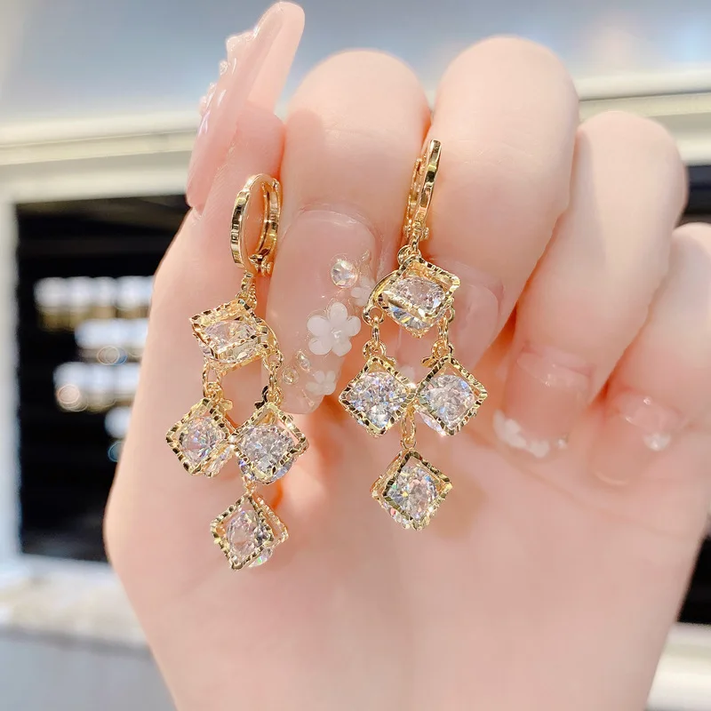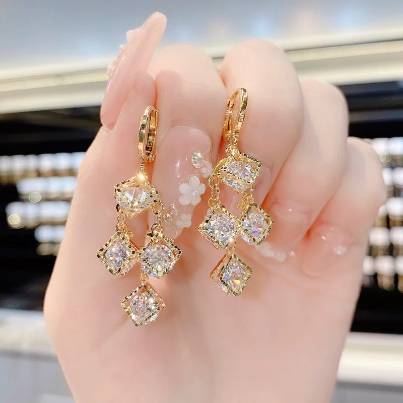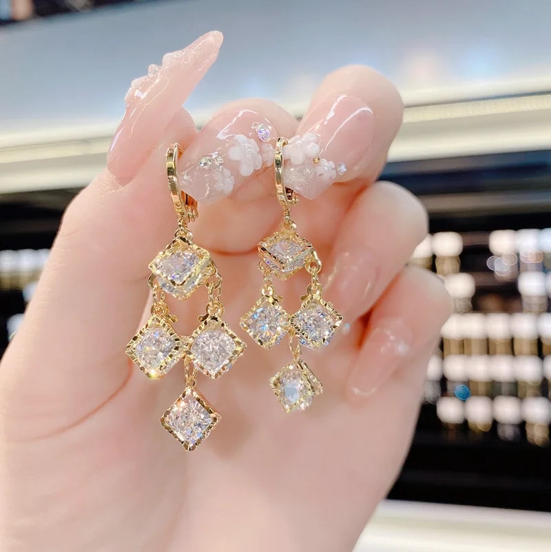 Модные серьги Стразы для женщин Роскошные циркониевые бриллиантовые Изящные ювелирные изделия женские модные длинные серьги-гвоздики подарки