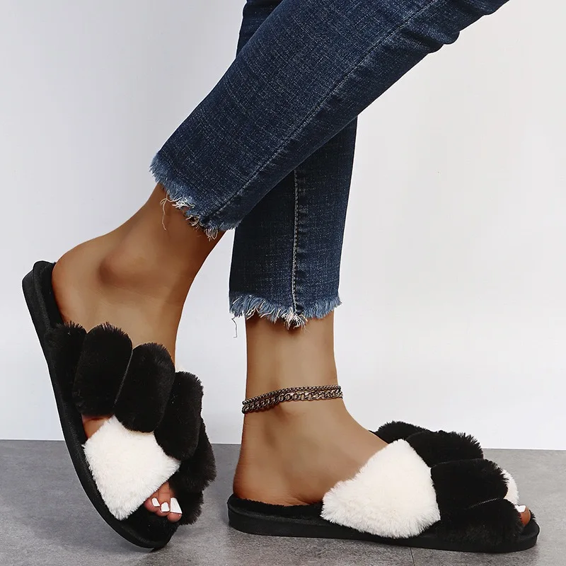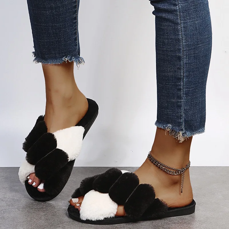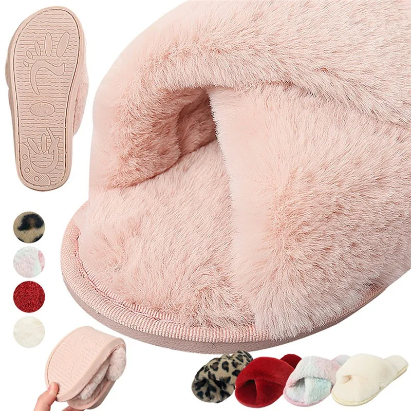 Женские меховые шлепанцы, зимние мягкие плюшевые шлепанцы из искусственного меха, с открытым носком, 2021