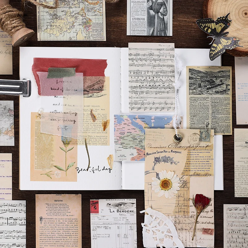 50 листов, стикеры Washi в виде книги, винтажные цветы, растения, к...