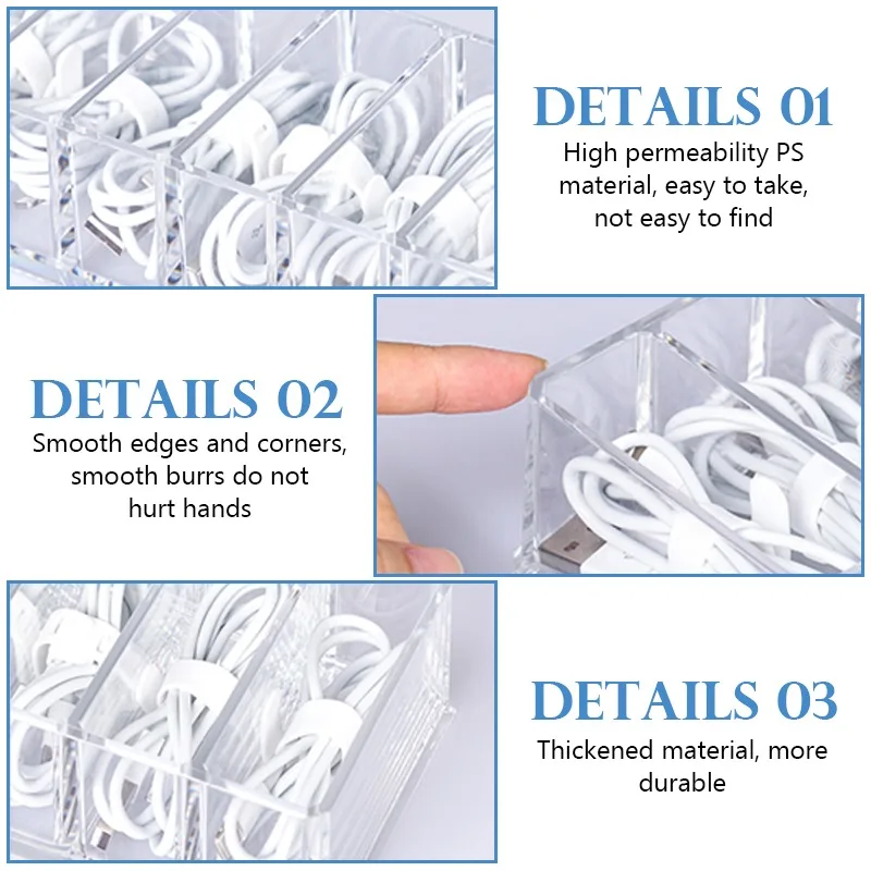 Коробка для хранения данных прозрачная пластиковая коробка для хранения кабеля для стола канцелярские принадлежности органайзер для макияжа, коробка для ключей и ювелирных изделий