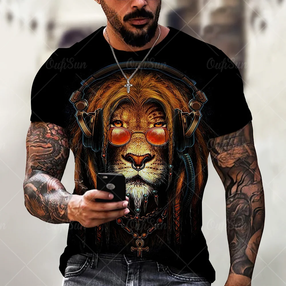 Футболка мужская оверсайз с 3D-принтом льва, модная уличная одежда ...