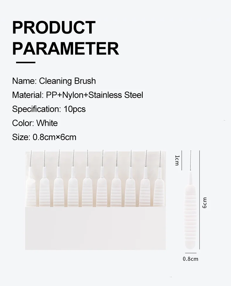 Название: Чистящая ЩеткаМатериал: ПП + нейлон + нержавеющая стальСпецификация: 10 шт.Цвет: белыйРазмеры: 0,8 см × 6 см