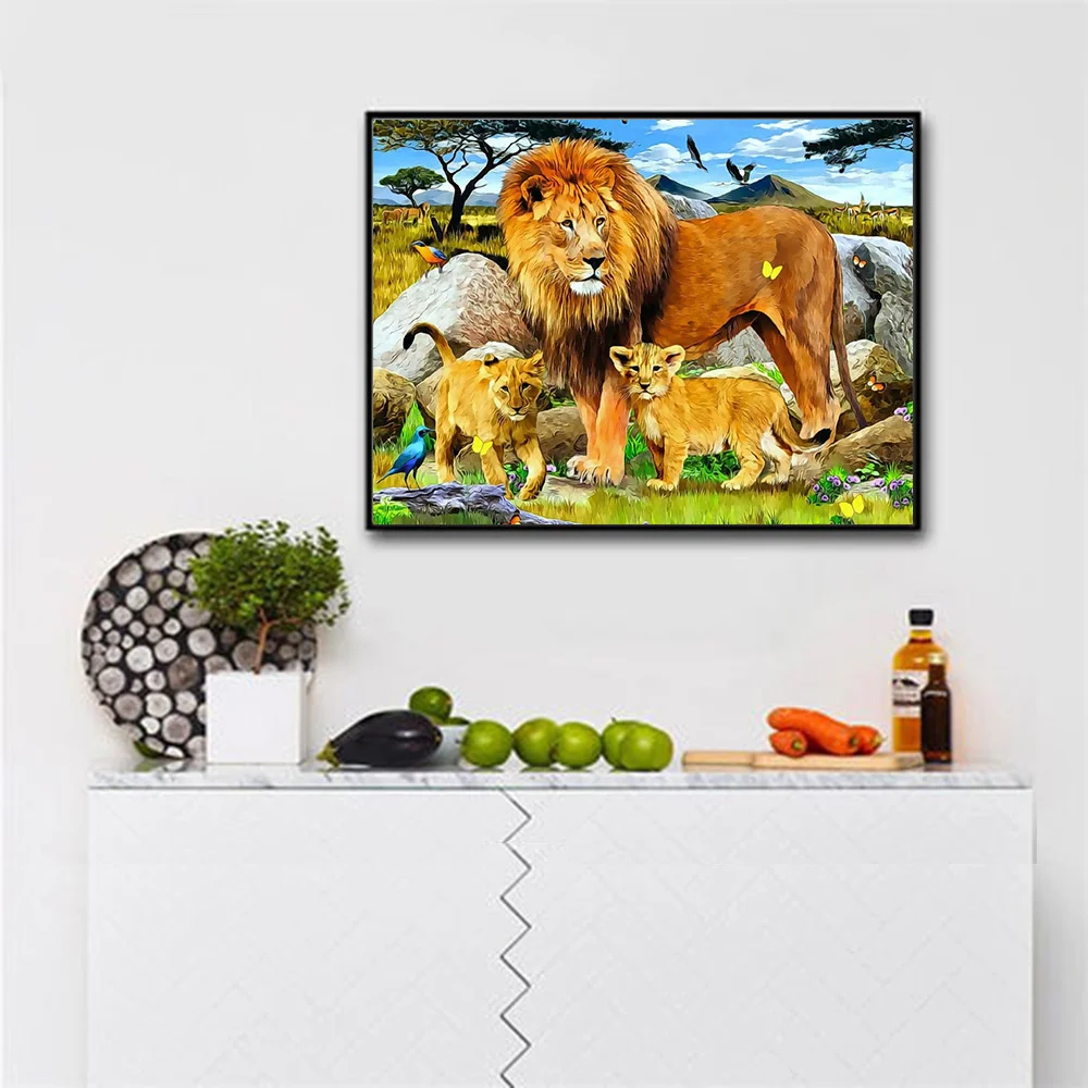 Huacan 5d Diy Алмазная картина Льва Животные Алмазная вышивка мозаика Закат Декор для дома