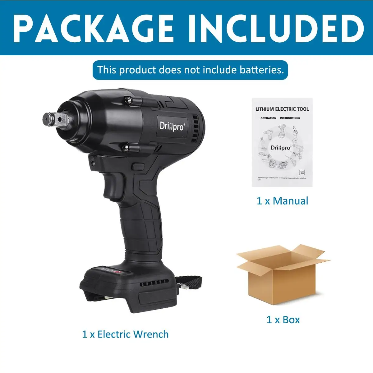 Технические характеристикиПодходит для Makita 18V БатареяЦвет: черныйБез скорости нагрузки:0-6200 об/минЧастота удара: 0-6200 ipmМаксимальный крутящий момент:800N.MКвадратный привод:1/2"