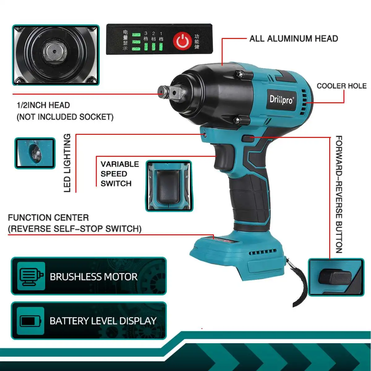 Гайковерт Drillpro ударный, 12 Н м, дюйма, для ремонта автомобилей и грузовиков, 18 в