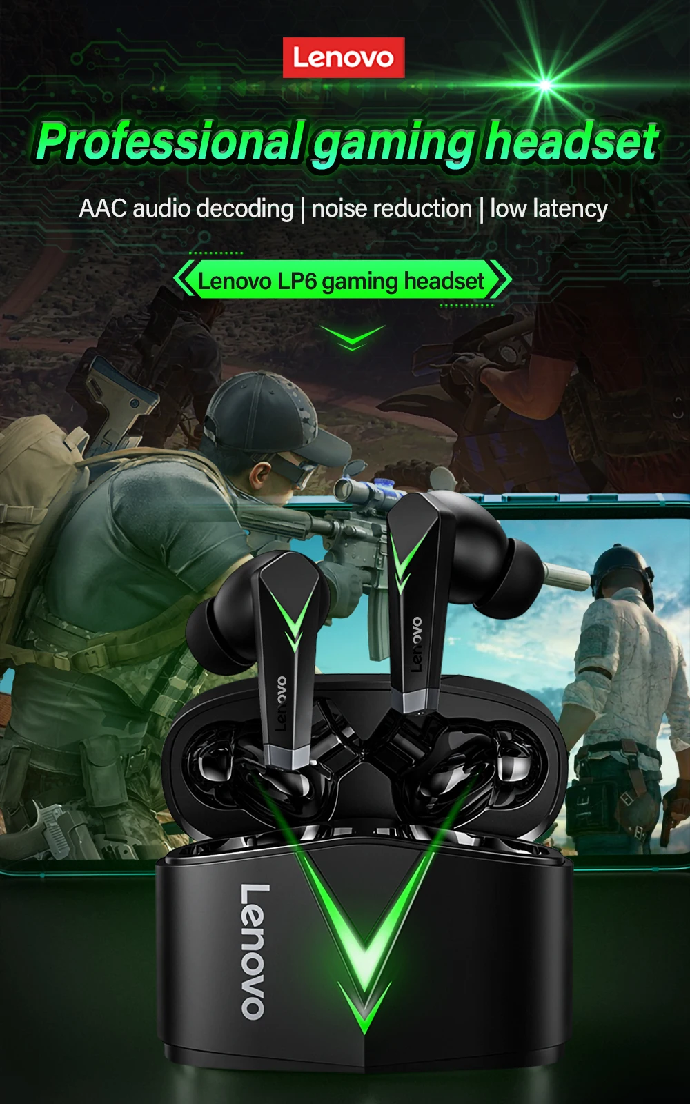Игровые наушники Lenovo LP6 TWS, новые беспроводные bluetooth наушники с шумоподавлением, Двухрежимная гарнитура для электронных видов спорта, музыки