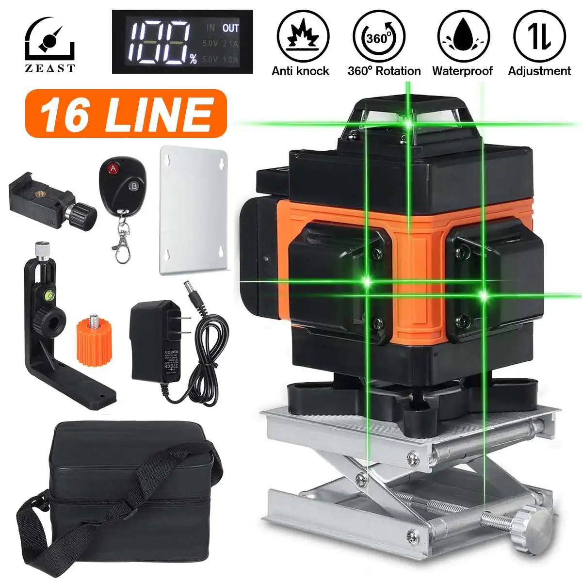 Лазерный уровень ZEAST, 16 линий, 4D 360, мощный зеленый измерительный уровень, Горизонтальные и вертикальные строительные инструменты, автоматическое самовыравнивание