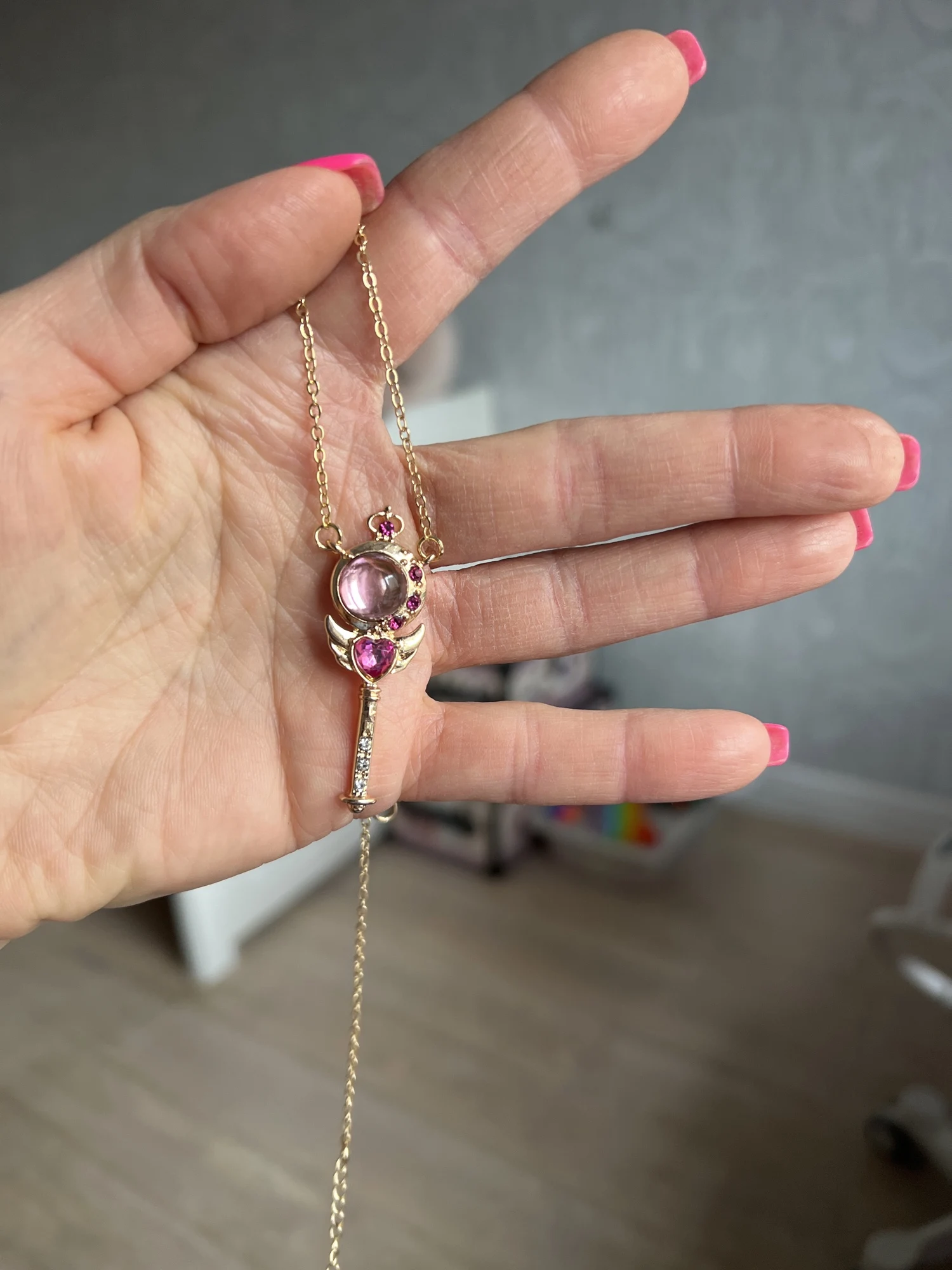 Аниме Луна охватывающее карточное ожерелье Сакура волшебная палочка устройство-трансформер любовь крыло сплав ожерелье Kawayi девушка цепочка до ключиц