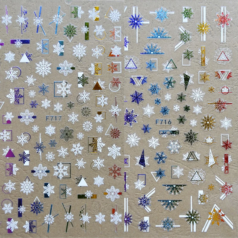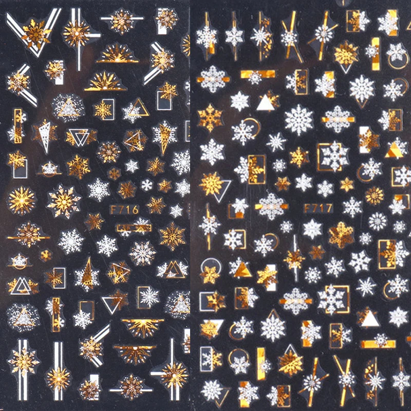 3D снежинки Рождественские украшения для ногтей блестящие золотые белые красочные блестящие геометрические зимние слайдеры Фольга для ногтей