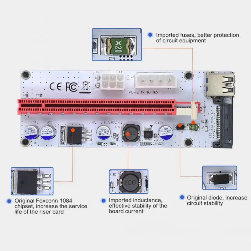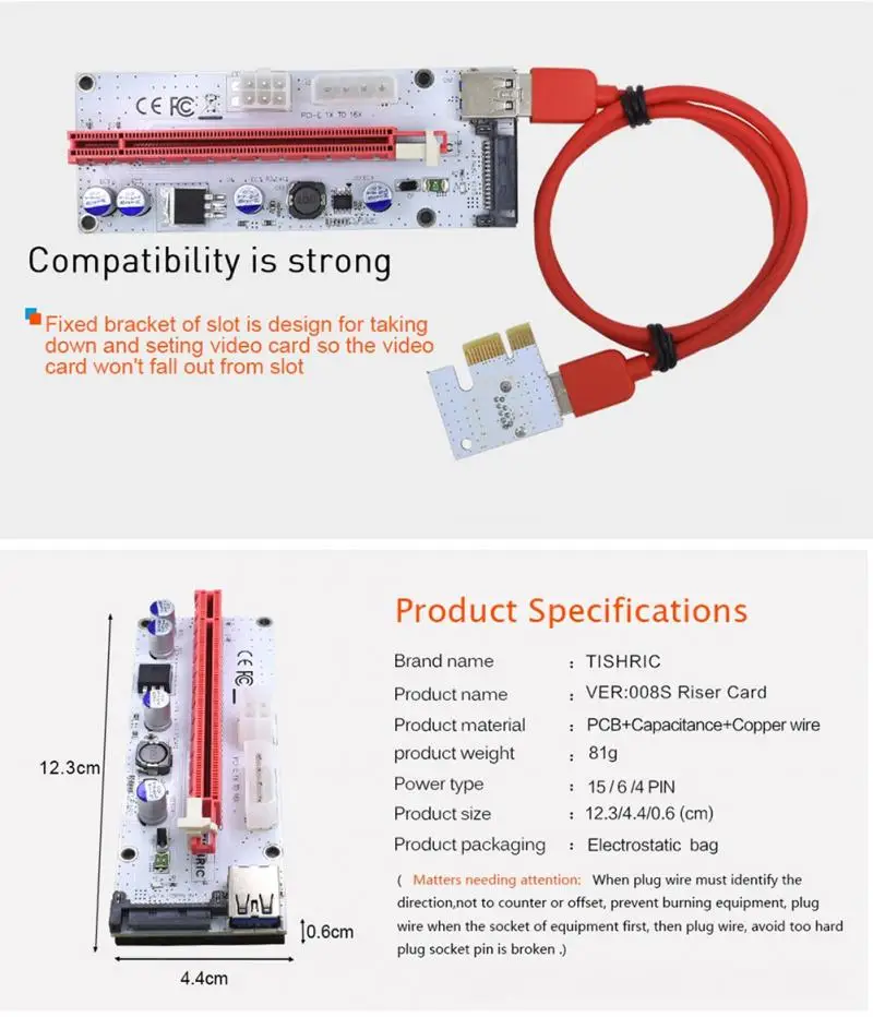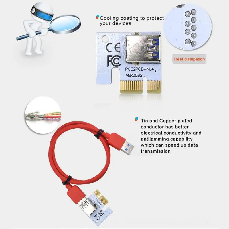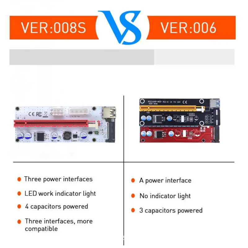 Название продукта: VER:008S Riser Card Материал изделия: PCB + емкость + медный провод Вес изделия: 81 г