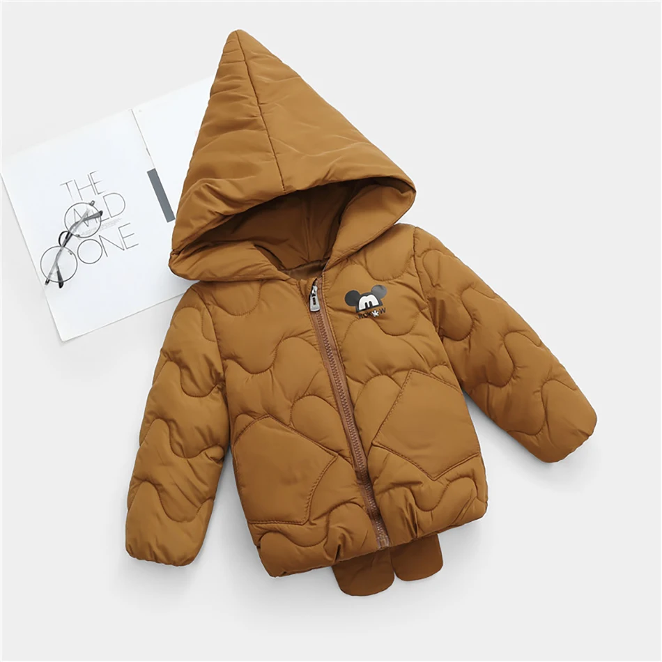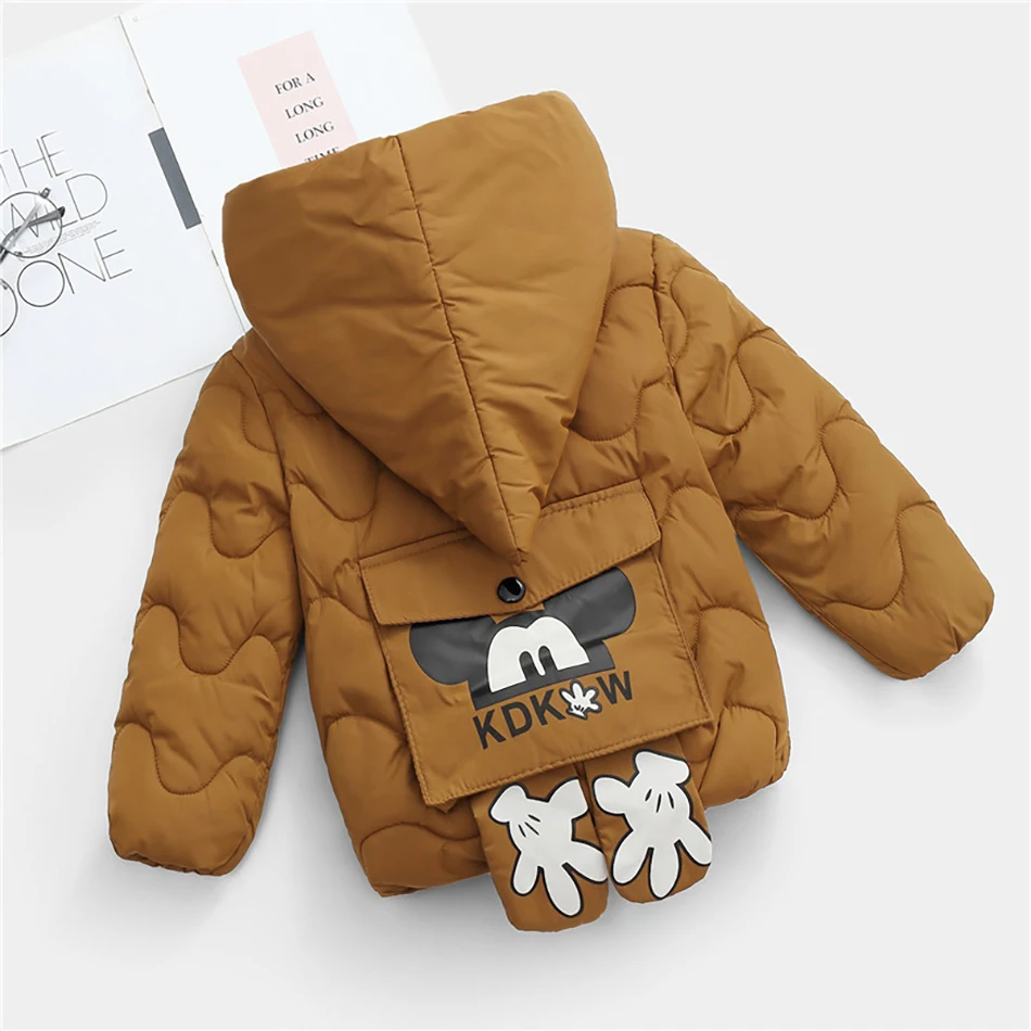 Зимняя детская теплая верхняя одежда с капюшоном, милая хлопковая одежда с Микки Маусом, новинка 2021, модная куртка на белом утином пуху для мальчиков и девочек