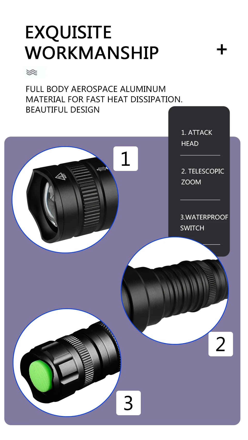 Высококачественный светодиодный водонепроницаемый фонарик с зарядко...